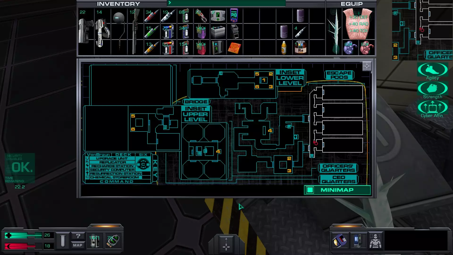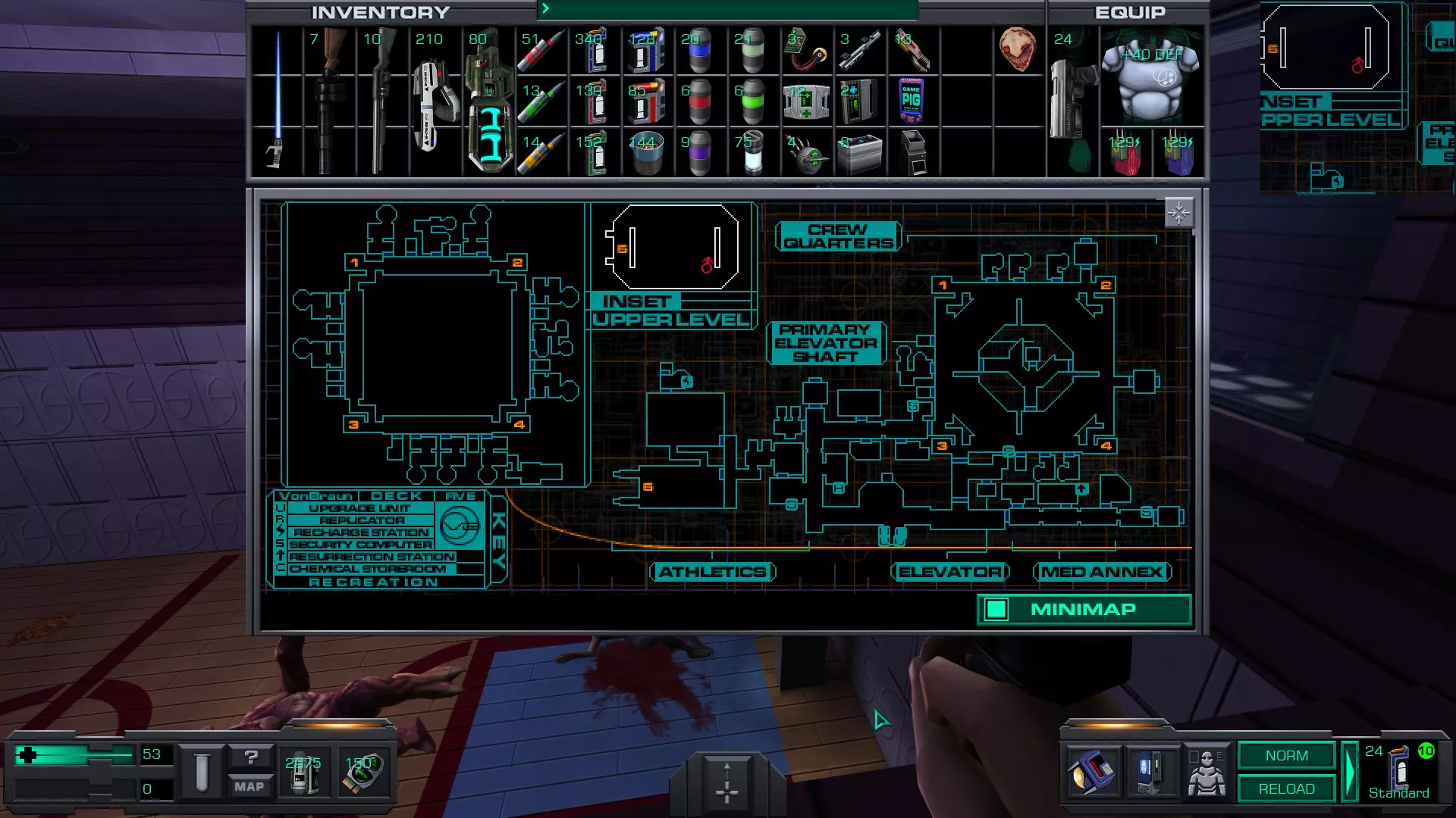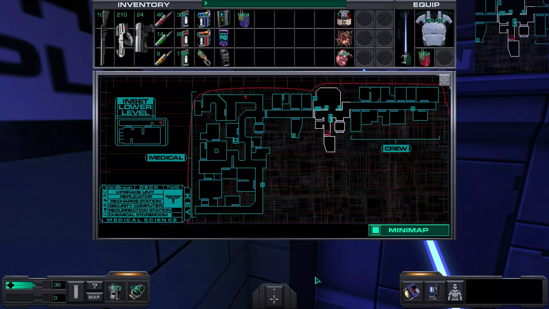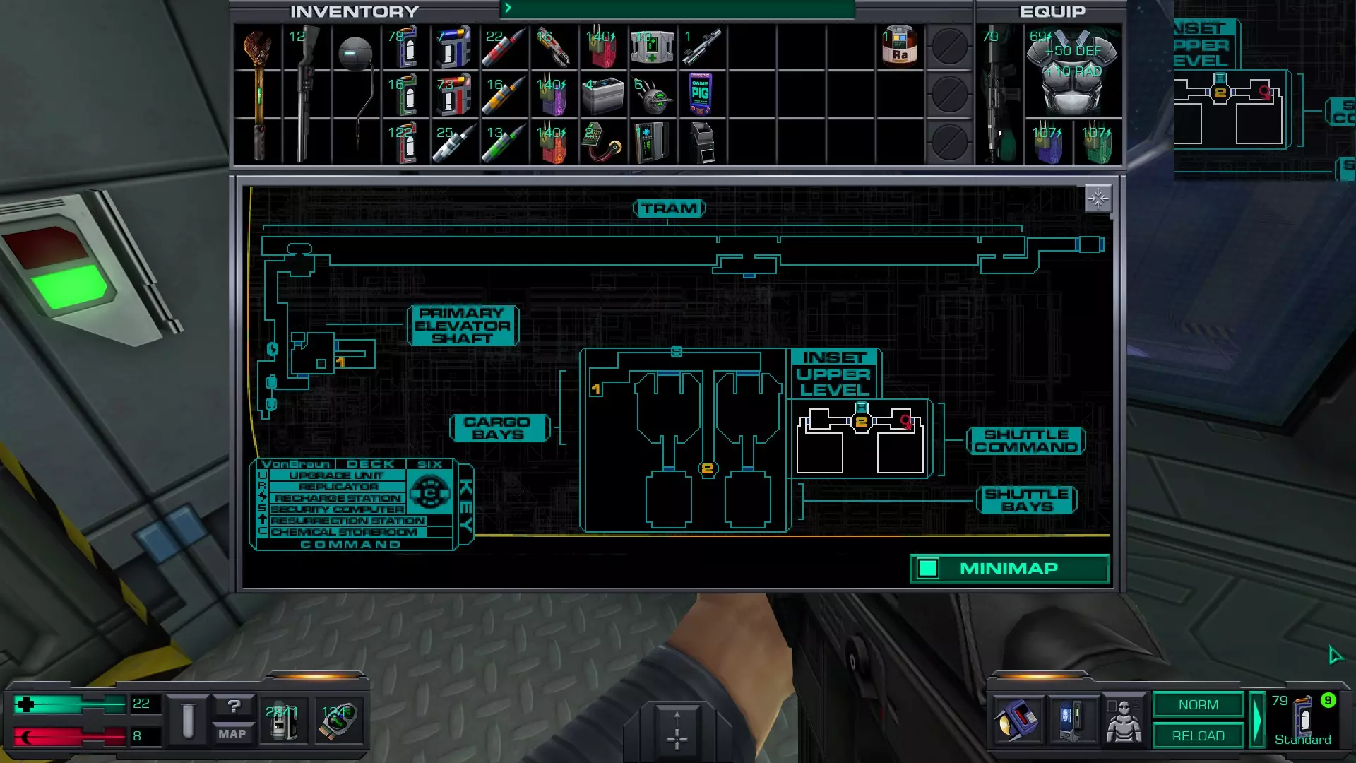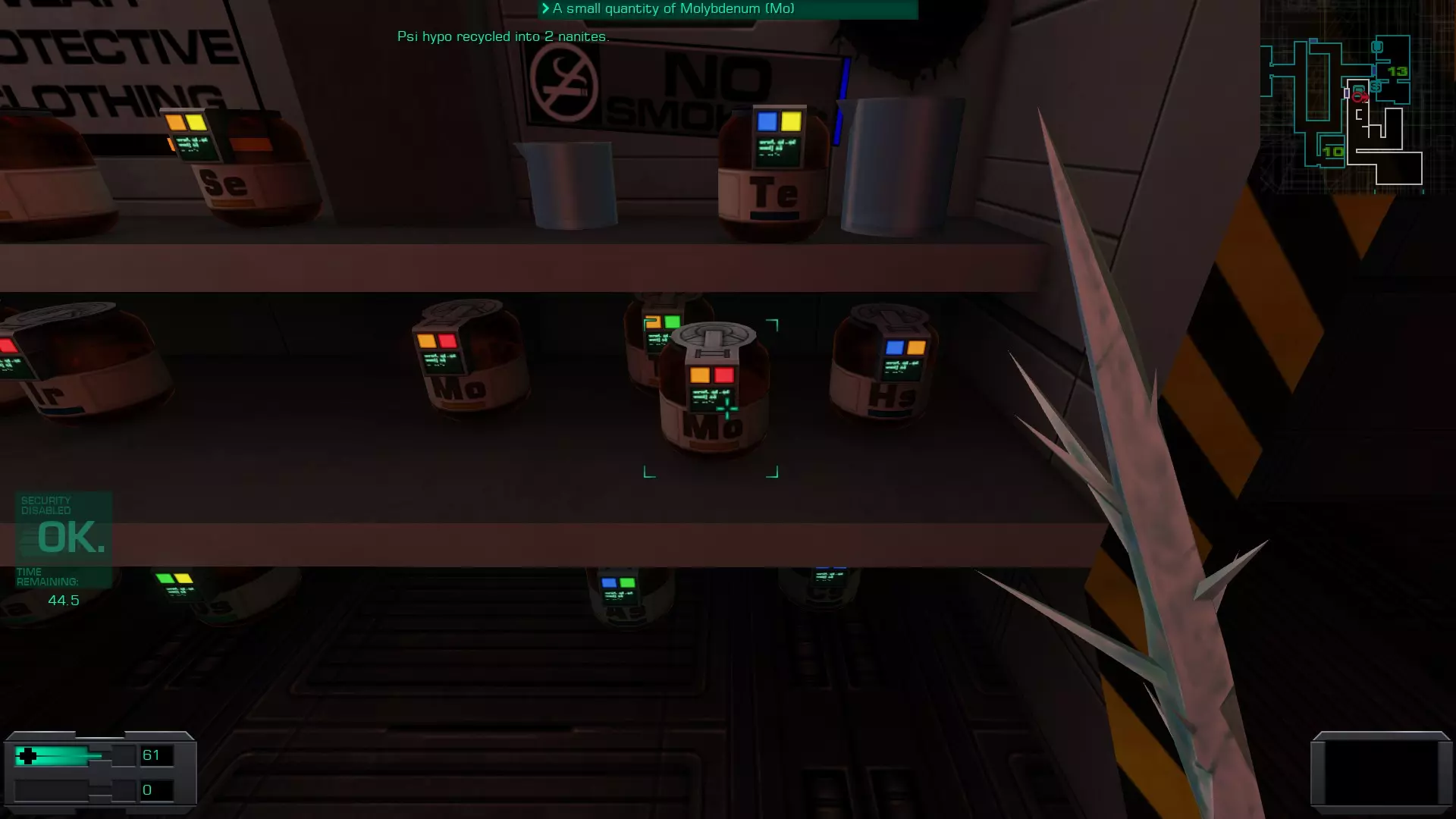 Preparation: Stunning 使用停滞力场发生器击晕敌人后将其击杀 虽然在本层可以找到停滞力场发生器,但要获得它需要穿过行动层并找到解锁医疗/科学层军械库的密码——或者你在之前的游玩中已经知道了密码,那么就可以直接解锁军械库。 军械库位于该层的医疗区(第二个区域),就在操作系统升级装置和其他升级装置旁边。 本指南假设我们不知道军械库的密码。不过我们可以记住,一旦获得密码就回到这个区域。 不过,如果你想提前解锁该成就,可以使用以下密码解锁军械库:98383