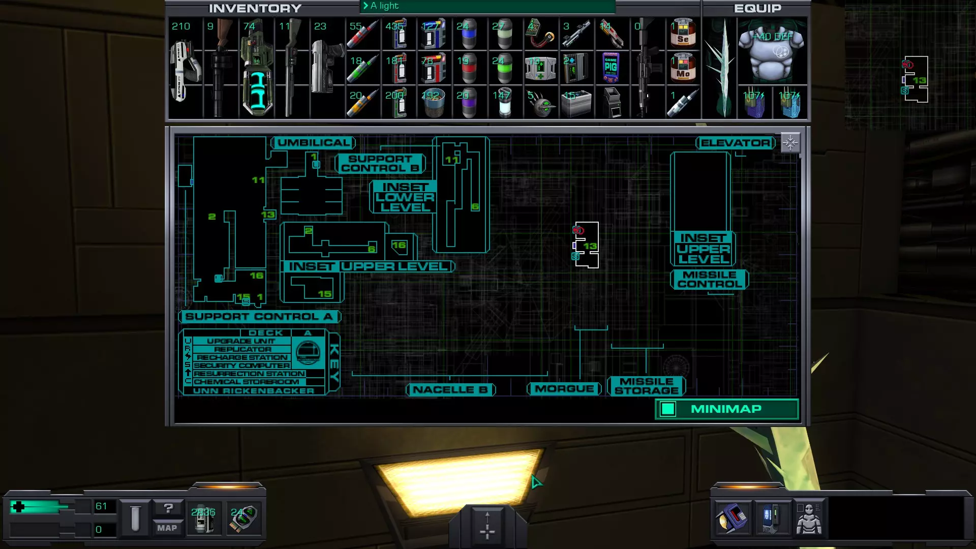 准备:服务包 应用4个操作系统升级 4个操作系统升级中的第一个可在此甲板找到。 穿过甲板的第一部分并通过舱壁(加载界面)到达第二部分后,你可以在靠近其他升级单元的位置找到该工作站。