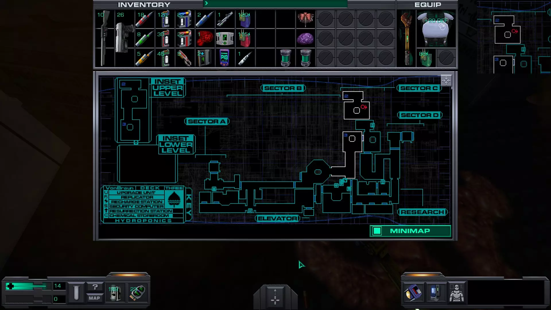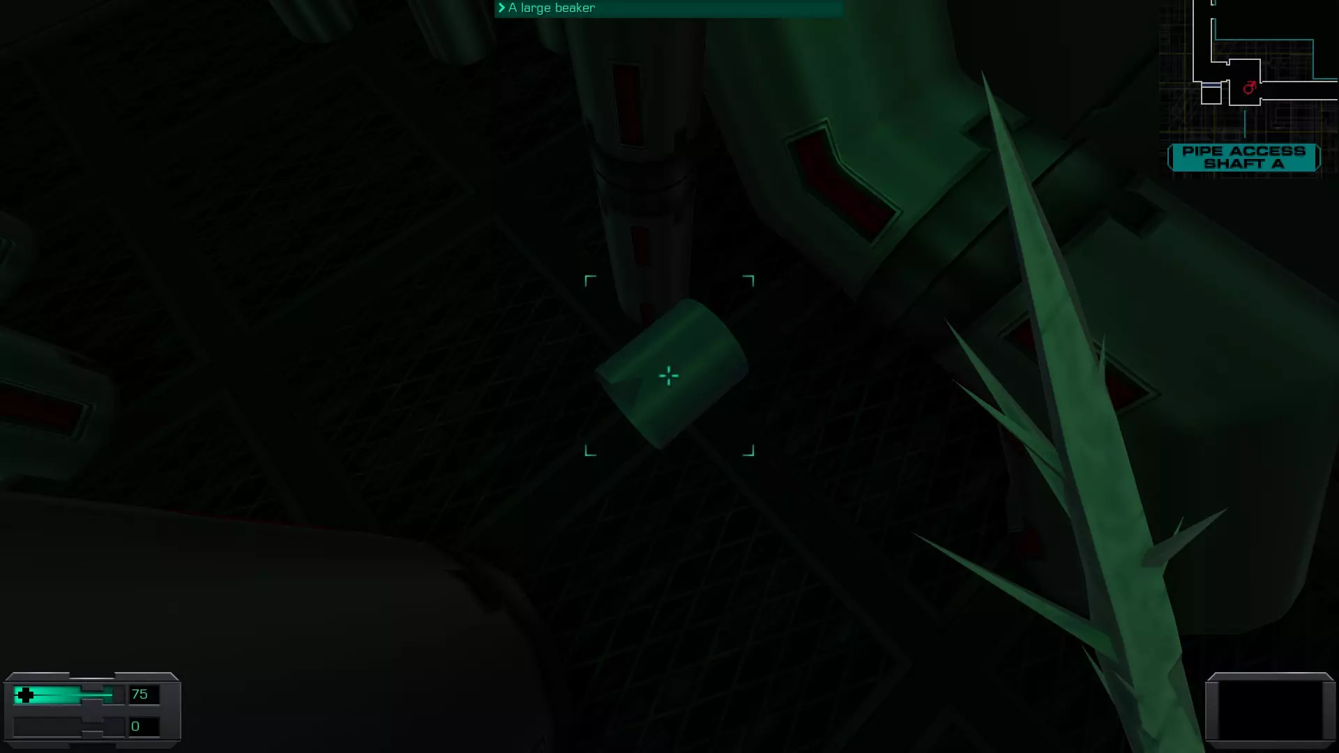 我在哪里? 在跳下平台与SHODAN进行最终战斗前,先爬上平台,找到一个藏有一些物品的藏匿点。