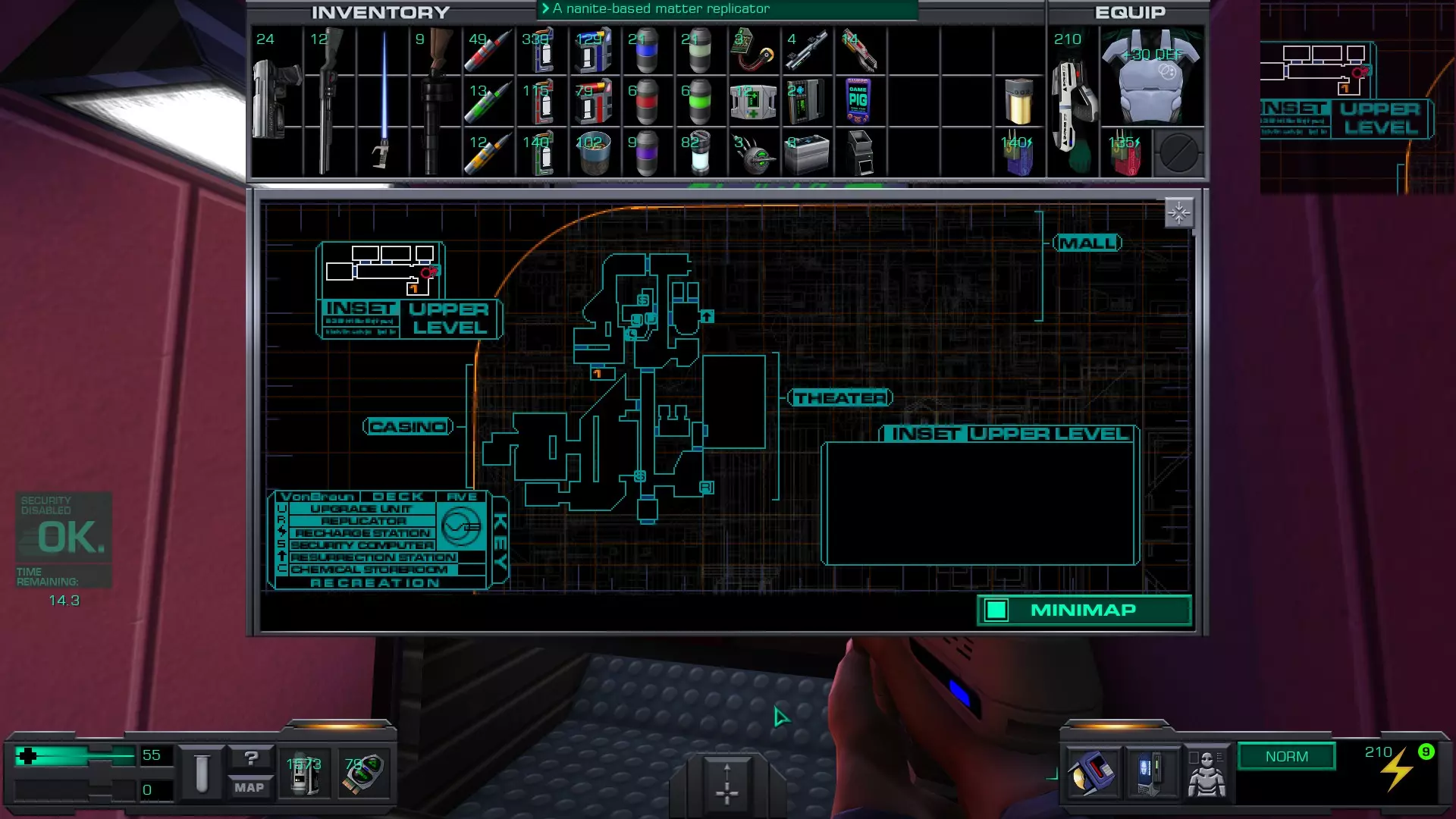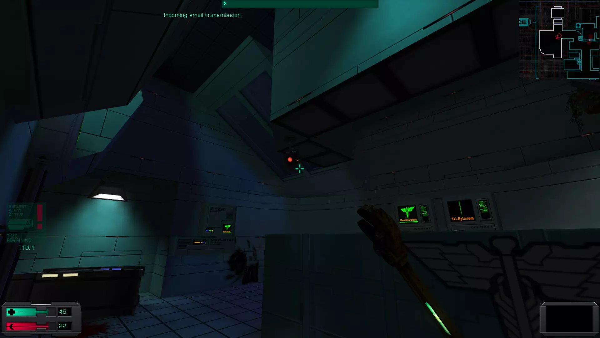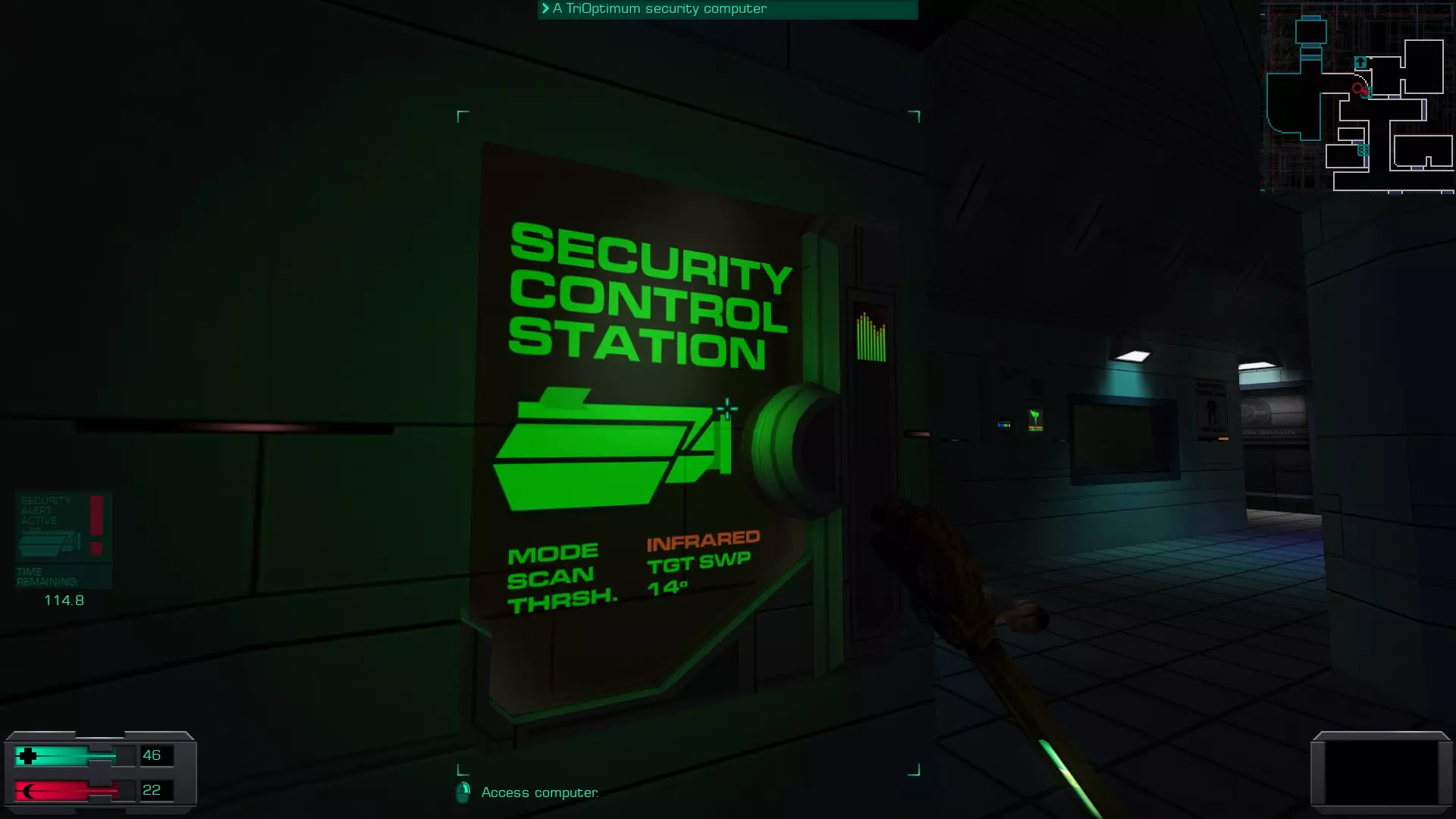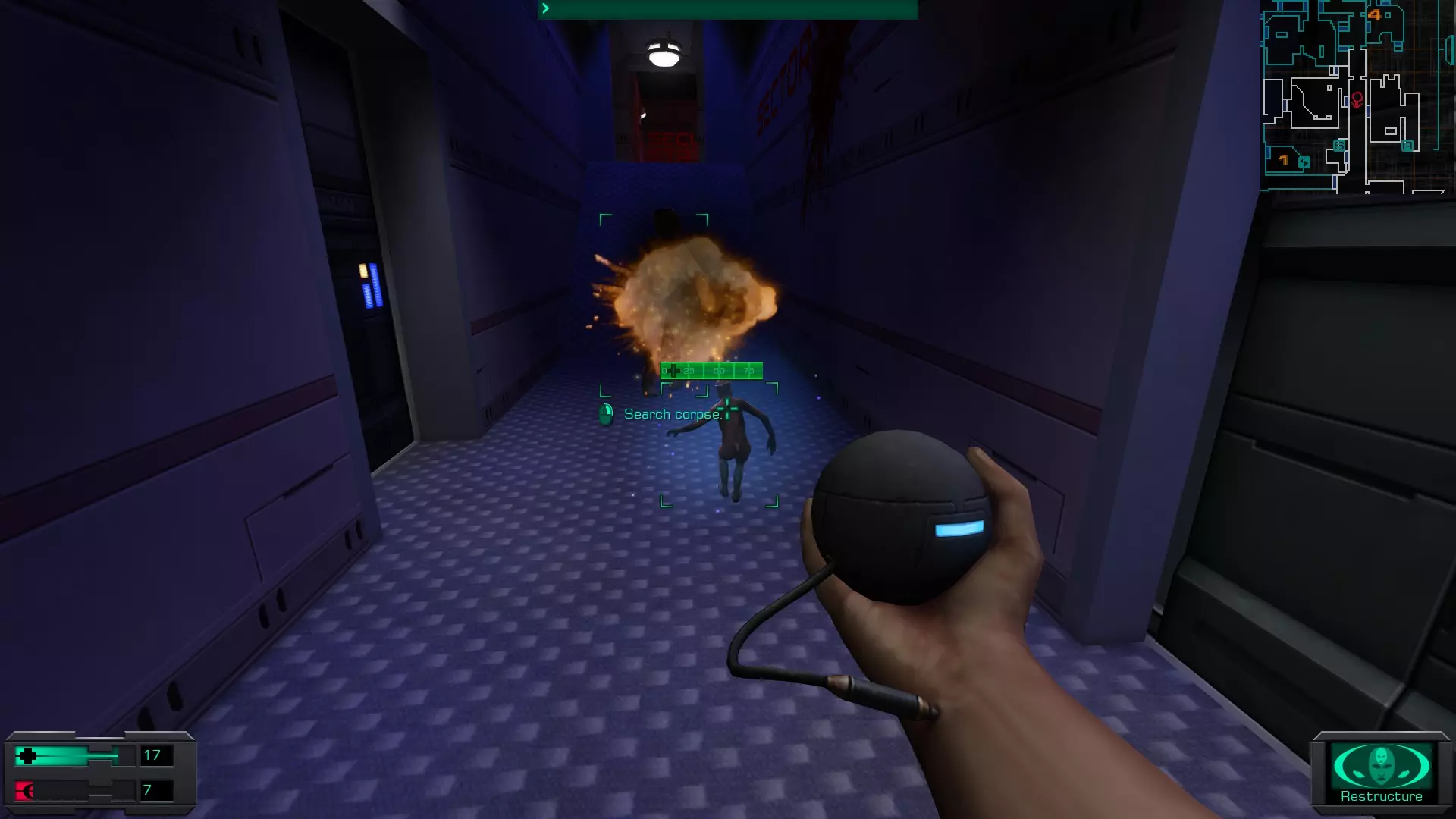 娱乐甲板 在安保区域维修隧道内的一具尸体上。可以先修复然后破解安保区域的门进入,或者向东走,找到一个观察室,从那里可以向下进入维修隧道的尽头。