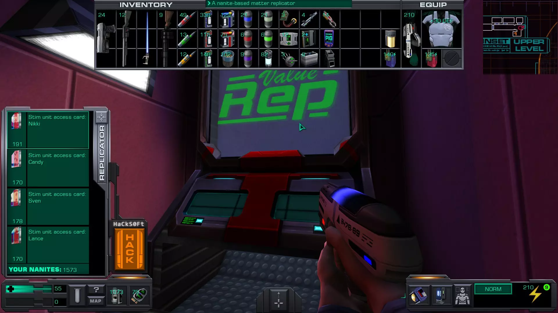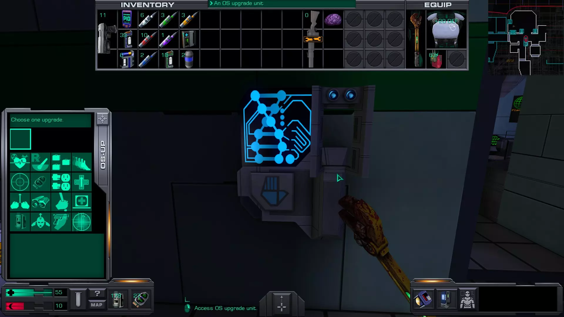 火力全开! 将任意武器升级至2级改装 若你在较低难度下游玩,你会获得足够的赛博模块将改装技能提升至3级,这足以将一把手枪改装至2级——手枪是在当前甲板上能多次找到的非常常见的武器。 当你拥有足够改装所选武器的改装技能等级后,在物品栏中右键点击该武器,选择改装,然后成功改装武器两次。 你也可以使用弗朗西斯-爱泼斯坦装置来改装武器,每个装置可提升武器改装等级1级。这些物品在游戏后期会出现。 如果你此时无法将武器改装至2级,你可以在游戏后期再进行操作。