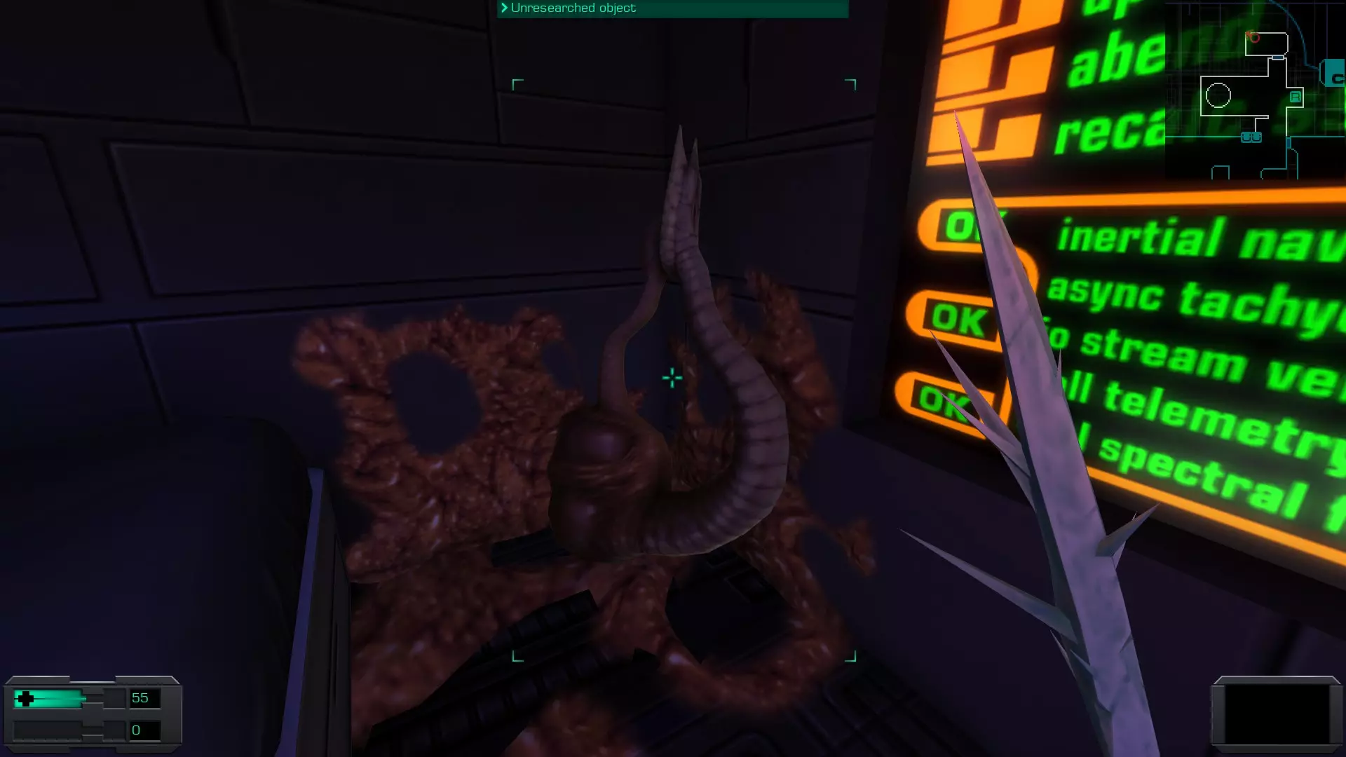 Fire and forget 使用环节虫发射器击杀一名敌人 环节虫发射器是游戏中你能找到的最后一把武器。它位于舰桥区域的迭戈房间内。该房间的钥匙卡在他的尸体上。你不会错过它,因为这是通往游戏最终区域的线性路径。 要使用这把武器,你首先需要研究它,这需要6级研究技能,以及硒(Se)和钼(Mo)这两种化学物质。这两种化学物质可以在冯·布劳恩号之前的甲板、里肯巴克号的化学储藏室或后期的万物体内找到。此外,使用该武器还需要6级异域武器技能、3点力量属性和3点敏捷属性。你还需要蠕虫作为弹药,这些蠕虫可以在即将到来的区域找到,也可以在其他所有甲板上通过用空烧杯收集蠕虫群来获取。 一旦装备该武器,需将其模式设置为【反人类】以应对曾是人类的敌人(如咆哮者、机械助产士),或设置为【反环节动物】以应对环节动物敌人(如蜘蛛怪、灵能掠夺者)。 如果你因某种原因未拾取钥匙卡并打开迭戈的房间,在接下来的区域你还有机会找到这把武器。