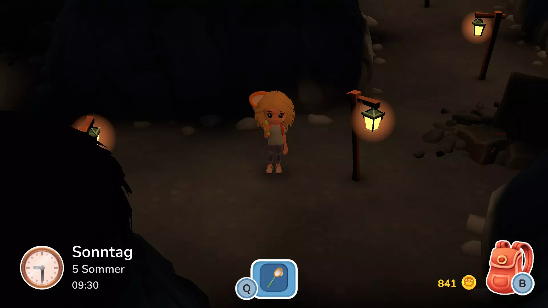 第一步 - 探索地图:在《哈克小镇》初期,地图还非常简洁小巧。这里有包含奶奶餐厅、莫斯商店的城镇,以及莫斯商店旁的一座“废墟”房屋(几天后这里会生成“罗莎”的建筑事务所)。继续在城镇中探索会生成一个新区域:草地。这里已经有一座村民房屋和另一座房屋,萨莉的工坊就位于后者中。下一个区域是沙滩。《哈克小镇》中共有四个区域:城镇、草地、沙滩和森林(其中森林需游玩数小时后才能解锁) 了解工具、战利品和地图 《哈克小镇》的初期步骤首先包括获取工具:斧头、鱼竿、铲子、捕虫网和鹤嘴锄。然后就可以开始收集战利品了。用斧头可以砍树,之后可以用铲子将掉落的树种或从莫斯商店购买的种子种下,培育新树。此外,铲子还能用来种植花朵(莫斯商店每天会有不同颜色的花种出售),或在草地上挖掘黏土和蠕虫。在沙滩上,用铲子可以挖取沙子。使用鹤嘴锄还可以挖掘海滩上每天重新刷新的石头。用鱼竿和蚊帐可以分别捕捉鱼类和昆虫。这些都可以卖给莫斯。另外一个小贴士是在海滩上和“德里斯”对话。这位镇上的居民总是待在海滩上,会向玩家发起钓鱼挑战等活动,完成后会有丰厚奖励。已捕捉到的昆虫和鱼类可以在背包中查看。很快你就会发现背包空间非常有限。为此,你可以在莫斯的商店购买背包升级,以增加一行背包容量。此外,游戏初期还有一些小型剧情任务,例如放置花盆。这些任务也会提供奖励。此外,重要的是要经常去餐馆看望奶奶,因为会有更多潜在的村民出现。 萨莉的工坊