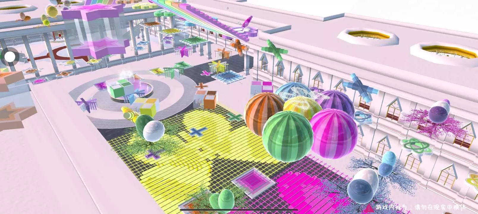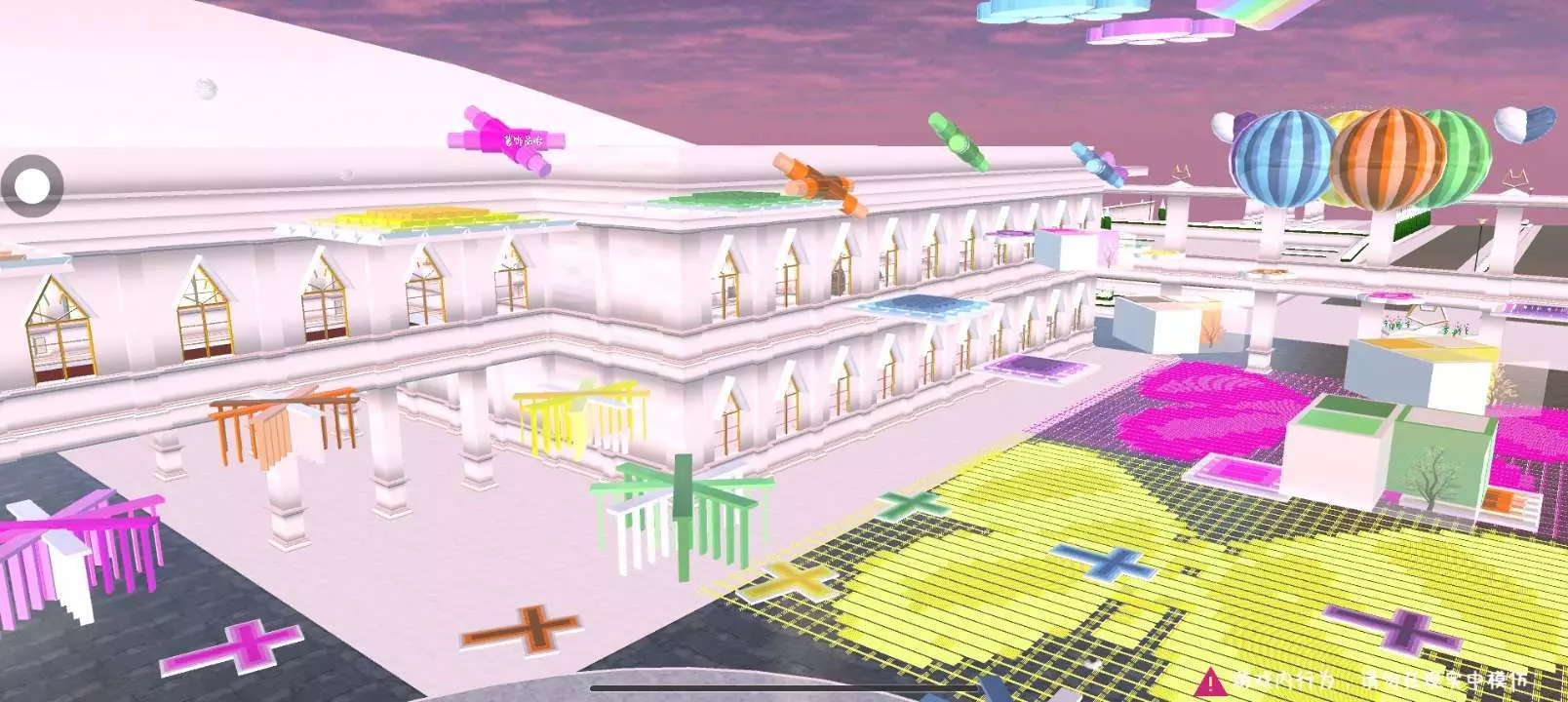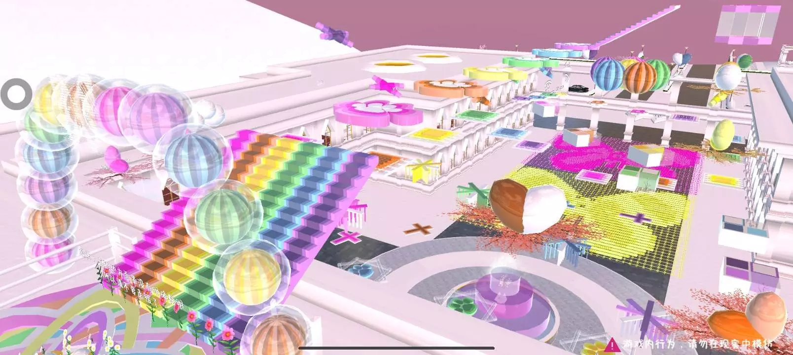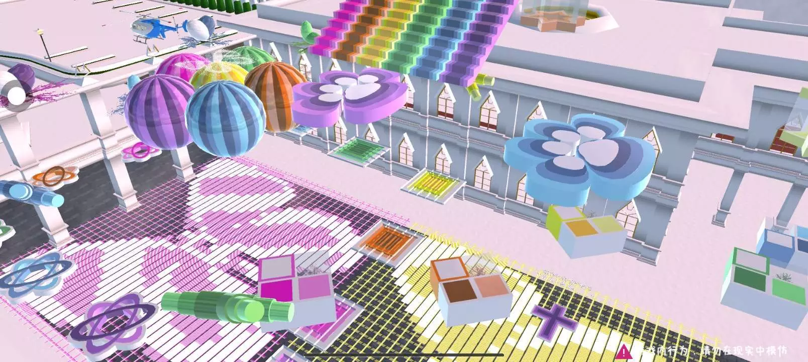 樱校创作者姩昭分享了围绕宫殿打造的彩虹跑酷建筑,色彩绚丽,还提供了可使用和不可使用的小道具ID,呼吁点赞,同时申请精华、周刊等,禁止盗作。