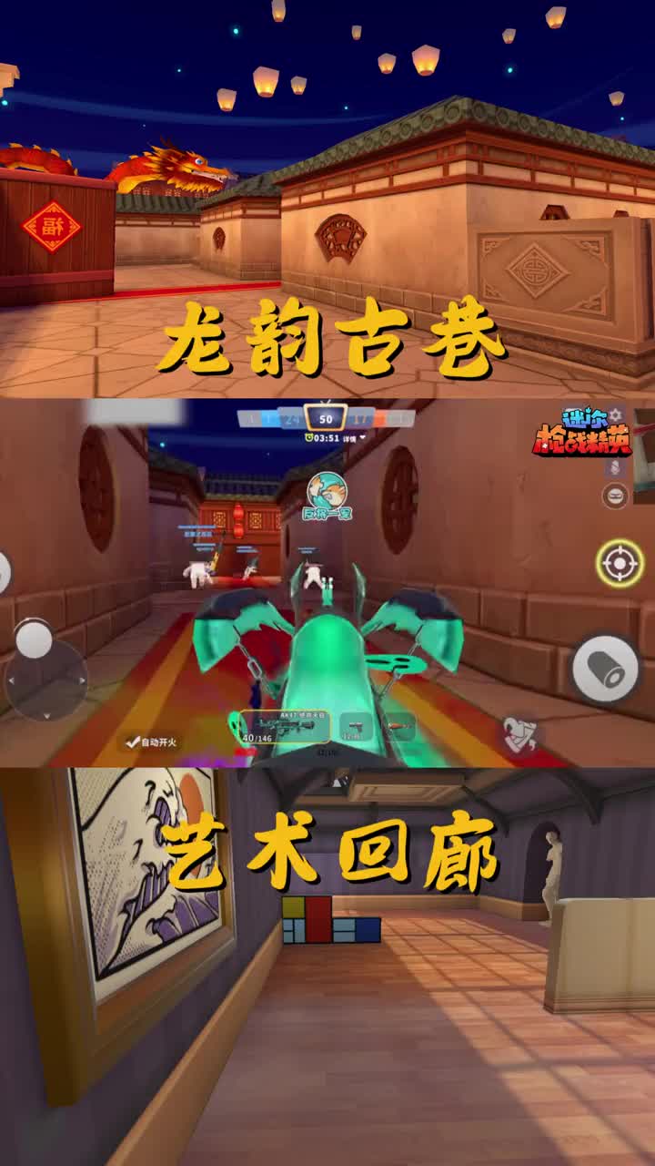 这是玩家分享的《迷你枪战精英》游戏内容,展示了在龙韵古巷地图的单挑玩法,玩家使用多款炫酷枪械参与对战,过程轻松,还呈现了武器选择界面与游戏主界面等内容。