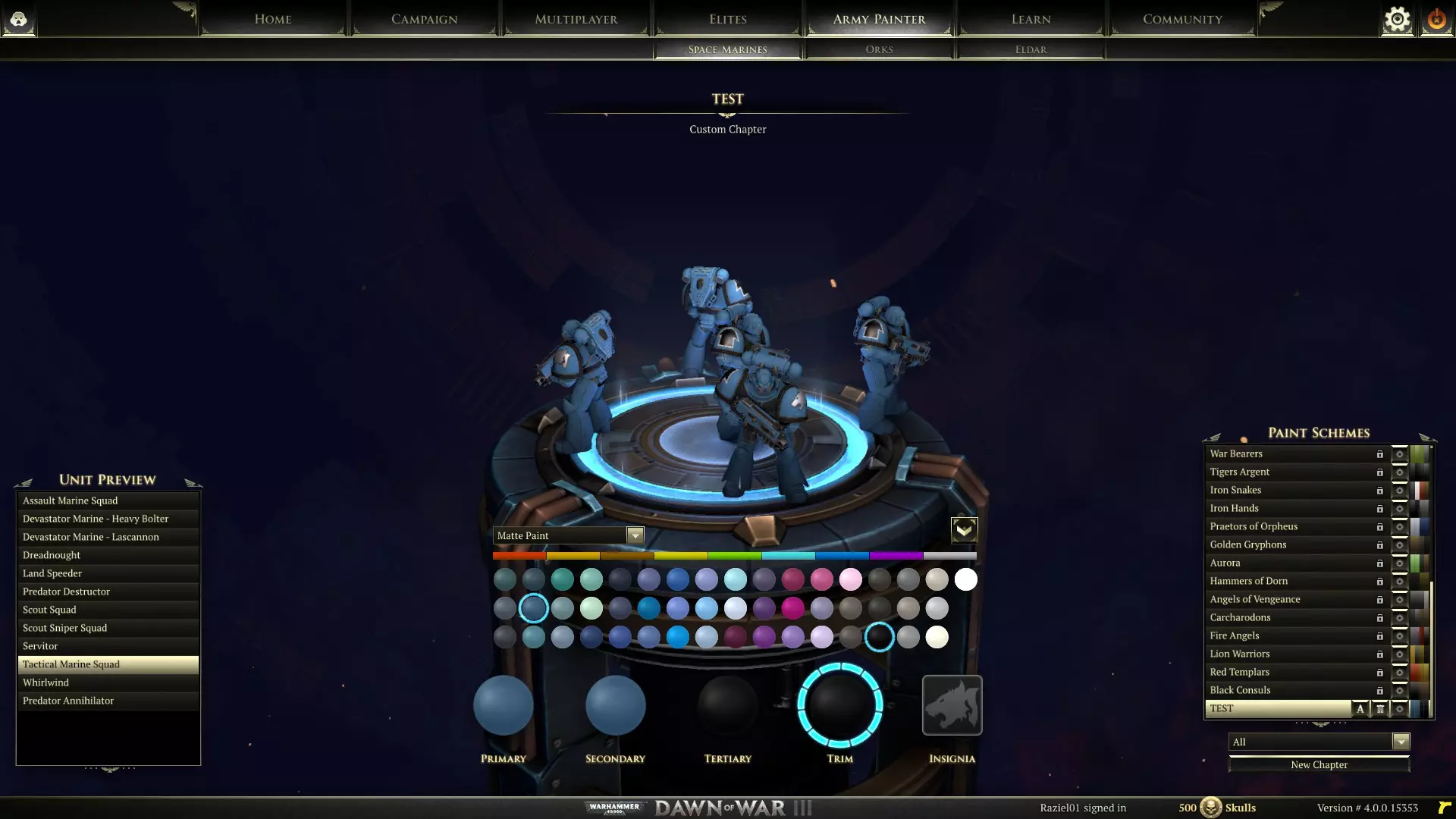发挥军队涂装器的创意! 作为一款基于战锤40K宇宙的游戏,《战锤40K:战争黎明3》自然配备了色彩丰富的经典军队涂装器。所有单位类型的装甲,无论所属种族,都被分为多个可涂装的图层。游戏初始就提供了大量颜色选择,包括不同的色调和细微差别,随着游戏进程还会解锁更多颜色,为玩家提供充足的选项来打造个性化军队。发挥你的创意,组建属于你自己的战团、战帮或灵族方舟世界吧!