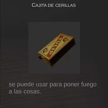 金钱 提示:来自您的马德鲁加的信 要完成此物品,需要按顺序执行一系列步骤: 获取金钱(一堆叠起来的钞票)。示例图片1-> 获取汽油(一个红色的油罐)。示例图片2-> 物品栏中至少有一根火柴。 前往第二个庭院;在中央,靠近喷泉的地方,会有一个可以互动的小火堆。示例图片3-> 1. 第一步:选择汽油。2. 第二步:用一根火柴点火。3. 第三步:选择金钱。 查看【漏洞】部分以避免整个游戏失败。
