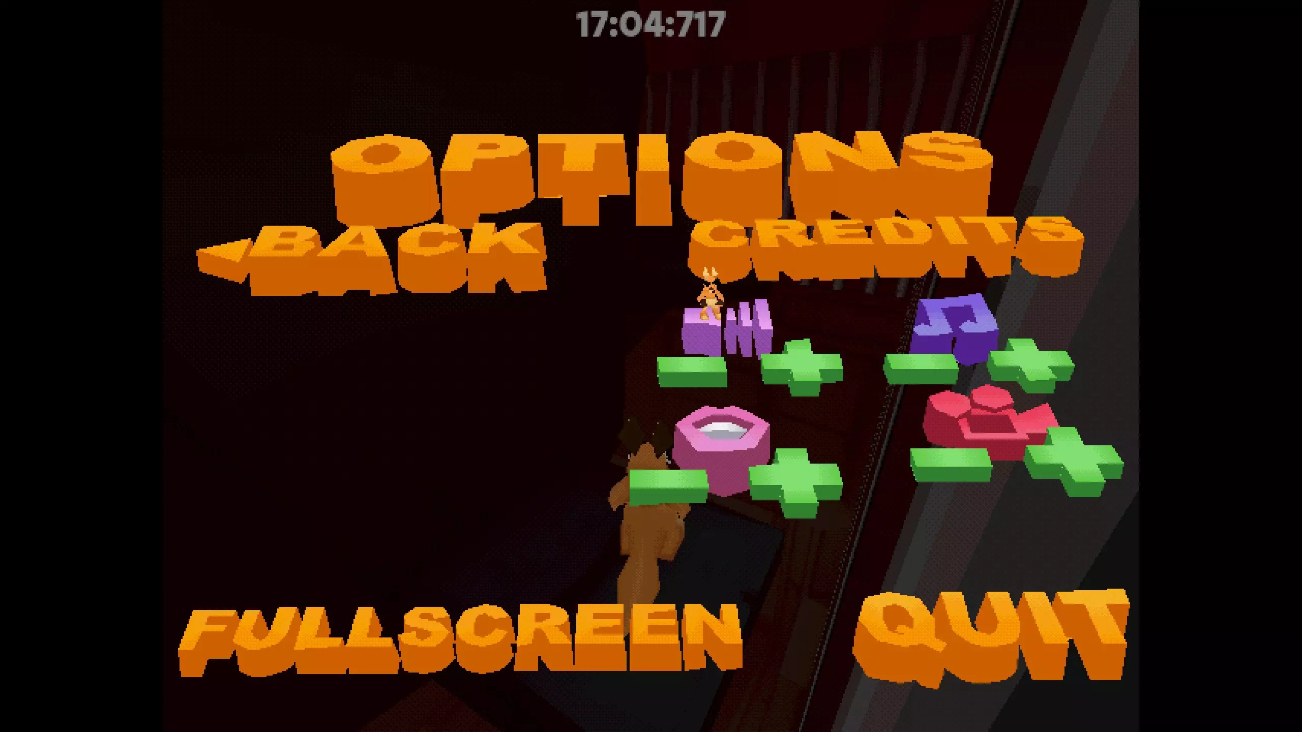 跳到制作人员名单上,注意不要落在字母C的正中间。除非你清楚自己在做什么,否则目标对准字母K。无论哪种方式,都会播放制作人员名单,名单会在屏幕上滚动并遮挡你的视线。但通过足够的练习,你可以忽略这一点。 落在制作人员名单后,瞄准音量图标。然后落在该图标下方那个图标的边缘,因为它的中心是空心的。或者落在加号上,理论上它应该不会有任何作用,因为默认情况下音量可能已调到最大。 最后,落在退出按钮上。尽量不要跳过头,这样你很可能会落在上面,保存游戏并关闭它。 通过这种方式可以保存你的进度。重置游戏(无论是通过Steam还是其他外部关闭并重启的方式)后,你会回到保存时的位置。 祝你收集【waifurs】愉快。