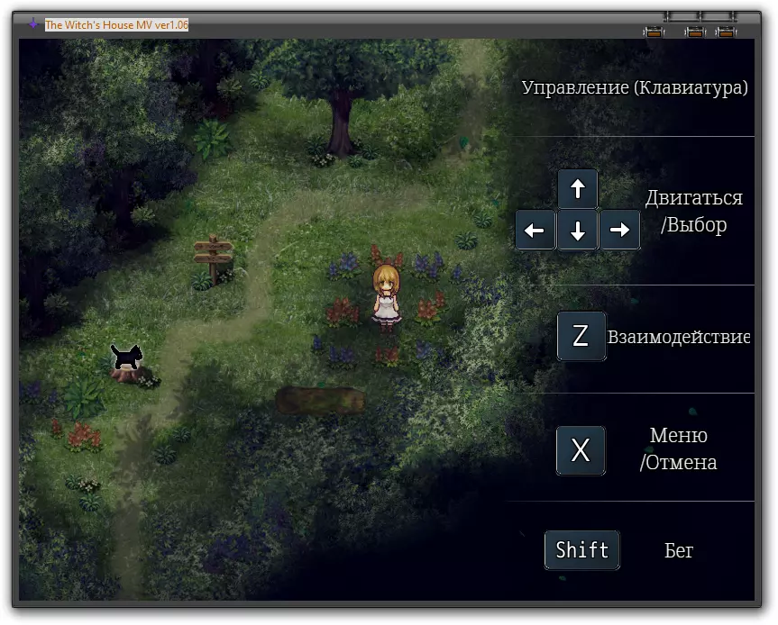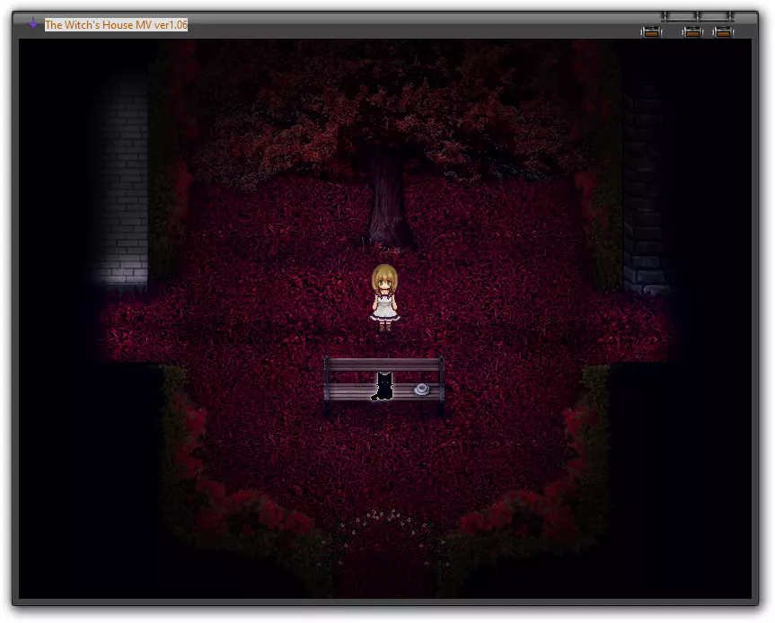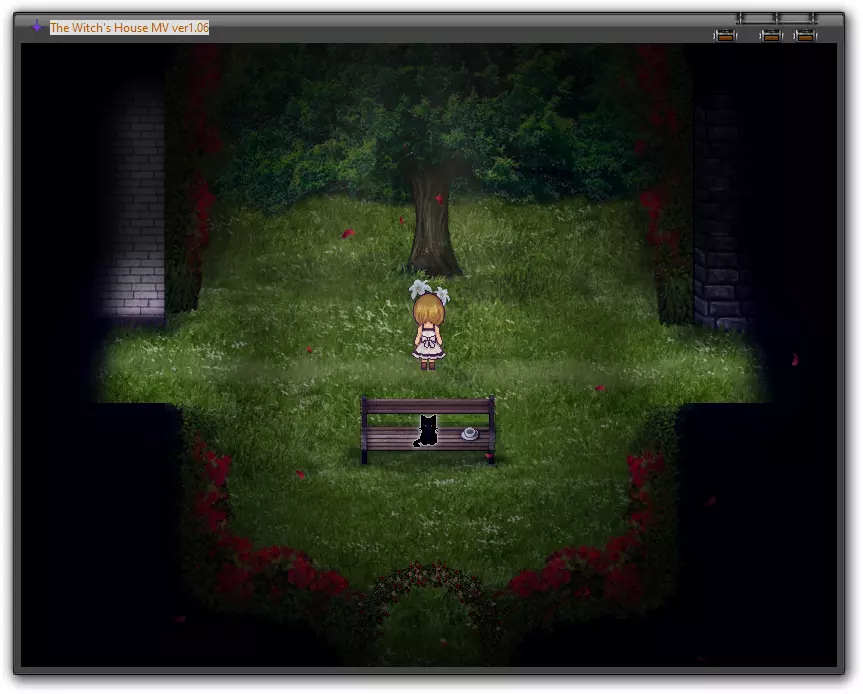 首先靠近坐在木桩上的猫,它可以帮你保存游戏。沿着小路向下走到玫瑰丛处。在玫瑰丛左边的森林里,能看到一丝光亮。穿过树木走到光亮处并调查那里,你会找到一把柴刀。现在回到猫那里,然后沿着小路向上走。用柴刀砍向旁边的玫瑰丛,为自己开辟道路。在猫那里保存游戏,然后进入房子内部。