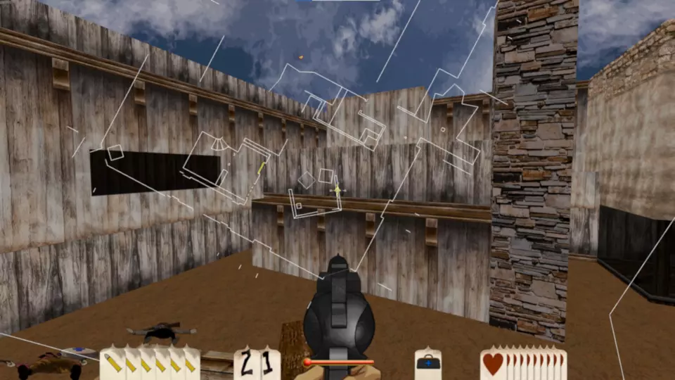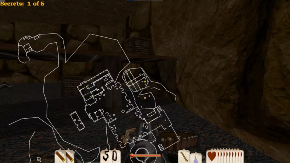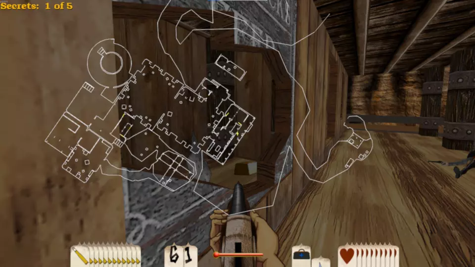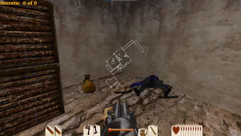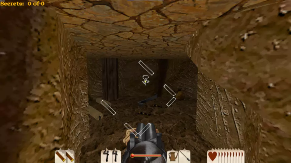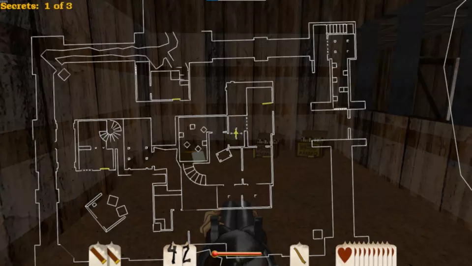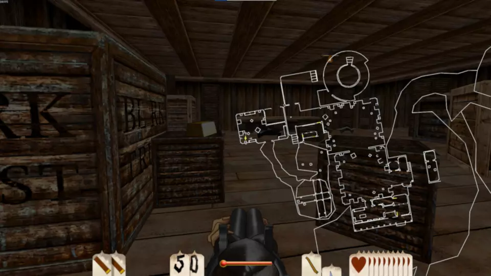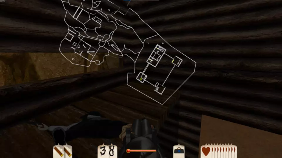 斯皮廷·杰克·桑切斯 这张地图包含3袋黄金和2根金条,总计17分。这是一张难度较高的地图,因为在关卡开始时玩家可用弹药极少,直到进入堡垒内室才能获得更多弹药。 如果你从堡垒右侧绕过去,会遇到一个拥挤的马厩。马厩内有一条秘密地下隧道,里面有蜘蛛,最终能找到一袋黄金。