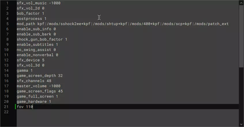 调整视野范围 此部分操作简单,只需在配置文件底部输入视野范围命令: fov 110