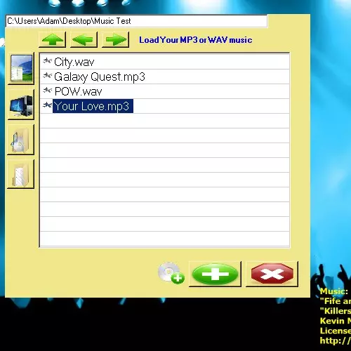 通过菜单上的侧边按钮导航至你想要加载的音乐所在目录。 进入目标目录后,点击音乐文件。(选中时文件会呈蓝色高亮显示。) 若音乐文件已呈蓝色高亮,只需点击菜单底角的【+】按钮即可。