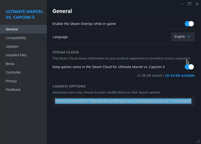 在【常规】>【启动选项】中,复制粘贴以下内容:WINEDLLOVERRIDES="dinput8.dll,CloneEngine.asi,ColorExpansion.asi=n,b" %command%
