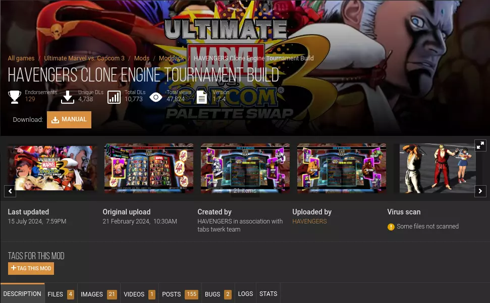 快速让50多个调色板交换角色在Steam Deck上运行。 简介 本指南将引导你轻松设置HAVENGERS Clone Engine Tournament Build mod包,撰写本文时,该mod包包含59个调色板交换角色、新的备选服装、颜色扩展工具包、恢复的伤害计数器,还可选择添加自定义界面/背景音乐/舞台。 此mod包专为玩家对战设计,不保证街机模式等离线内容能与mod角色正常运行(我使用阿修拉、莉莉丝和邪恶隆进行游戏时未出现崩溃,但听说很多mod角色存在问题)。 请注意,此mod包与其他mod包不兼容。