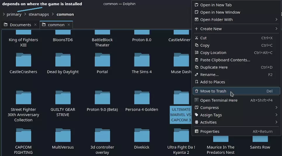 在通用文件夹中,右键点击【终极漫画英雄VS卡普空3】并移到废纸篓
