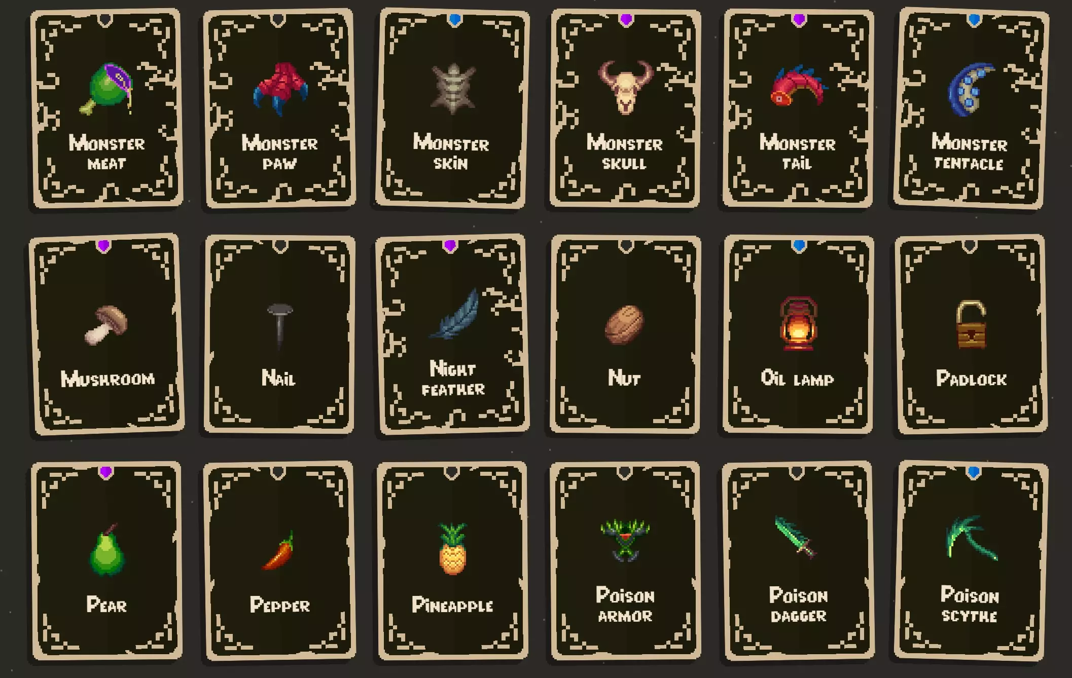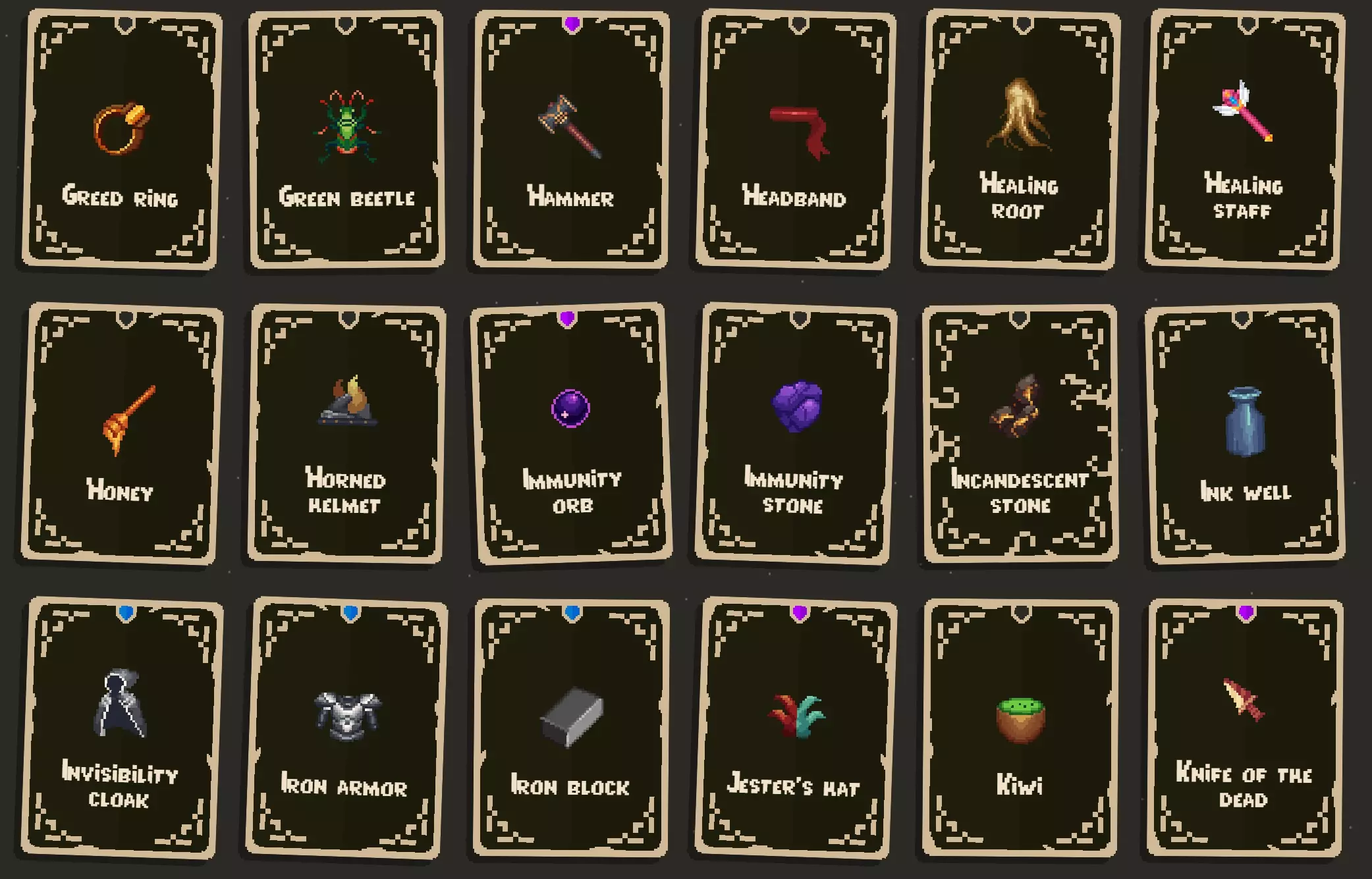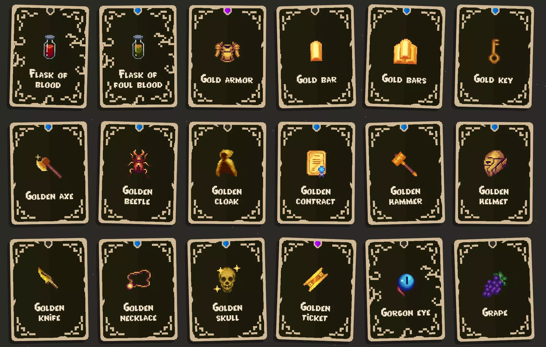 寻找物品的几点提示: 带有锁而非螺旋图标的物品,需要先解锁才能找到。解锁方式是完成成就以及挑战部分中的挑战。 物品池似乎有三种: 1. 基础物品池:可在商人宝箱和城镇商店中找到。(城镇商店可用于寻找更特定的物品。) 2. 诅咒物品池:可在诅咒宝箱中找到。(夜羽有帮助,它能将所有物品转化为诅咒物品。) 3. 骷髅物品池:可在骷髅宝箱中找到。(当你收集到一定数量的骷髅后,它们才会开始生成。) 大多数物品会出现在多个物品池中,有些则是特定物品池的专属物品。 商人代币可以重roll所有商店,但骷髅宝箱除外。 卷轴有助于你找到更稀有的物品。 还有一些角色专属物品。这些武器仅特定角色可使用,其他角色无法获取。 在旅程模式中可以扩展收集品,因此你可以将所有难度调至简单,然后选用阿努比斯2号或其他你用着顺手的角色。