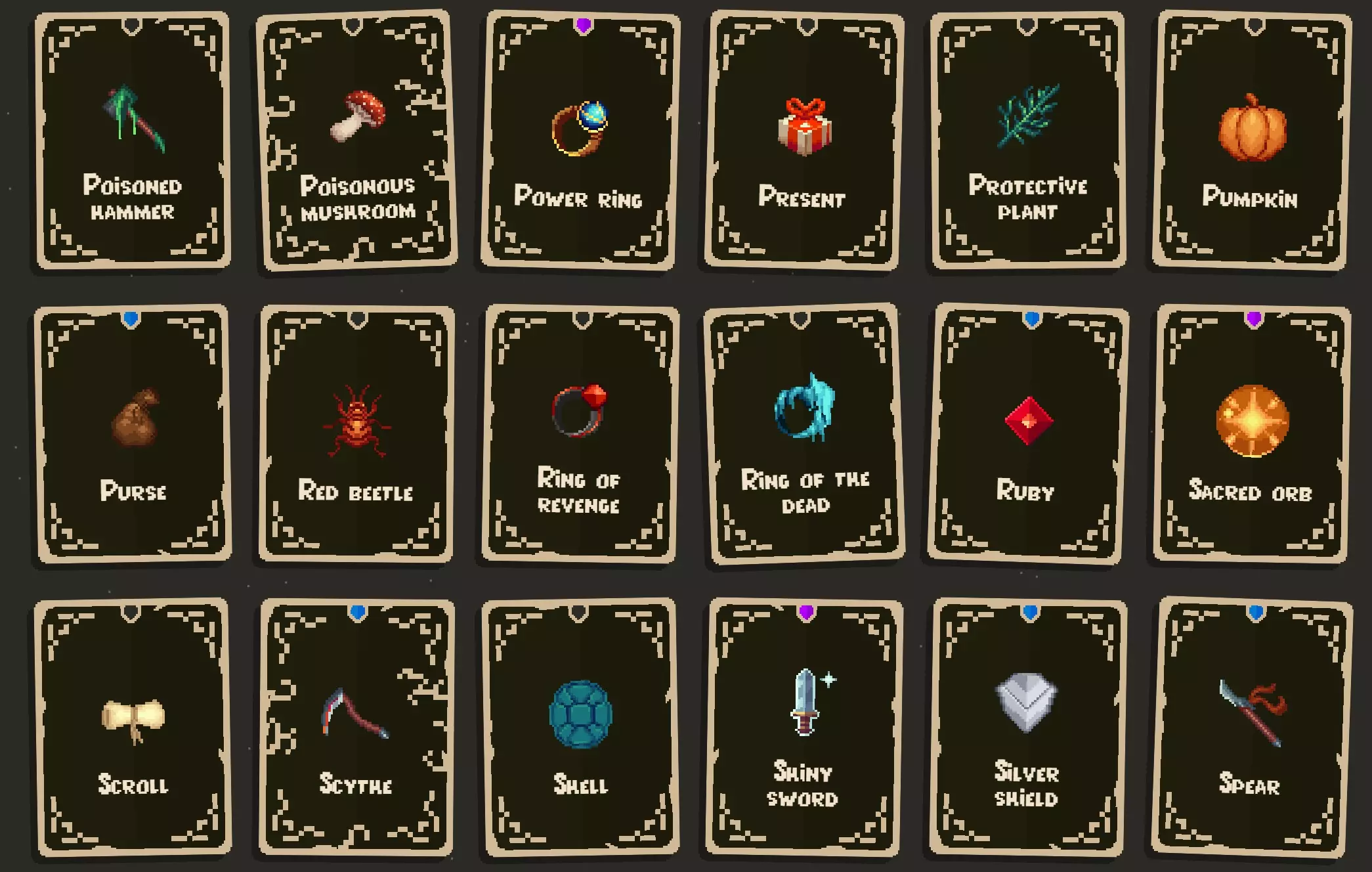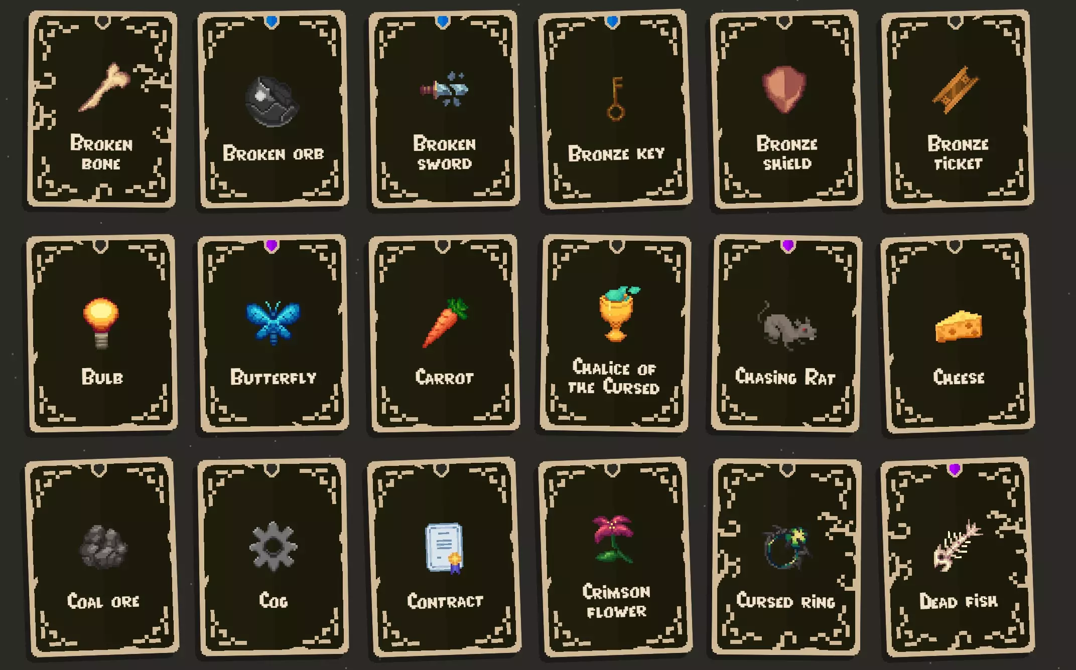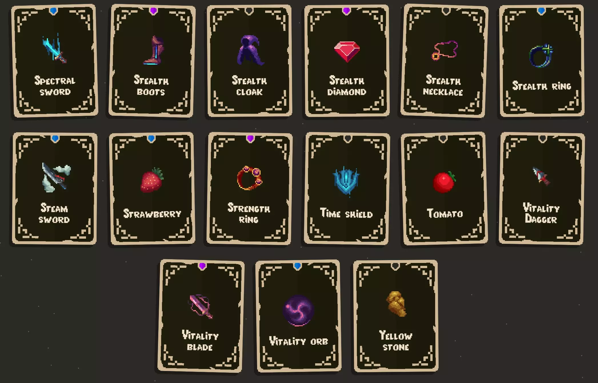 寻找物品的几点提示: 带有锁而非螺旋图标的物品,需要先解锁才能找到。解锁方式是完成成就以及挑战部分中的挑战。 物品池似乎有三种: 1. 基础物品池:可在商人宝箱和城镇商店中找到。(城镇商店可用于寻找更特定的物品。) 2. 诅咒物品池:可在诅咒宝箱中找到。(夜羽有帮助,它能将所有物品转化为诅咒物品。) 3. 骷髅物品池:可在骷髅宝箱中找到。(当你收集到一定数量的骷髅后,它们才会开始生成。) 大多数物品会出现在多个物品池中,有些则是特定物品池的专属物品。 商人代币可以重roll所有商店,但骷髅宝箱除外。 卷轴有助于你找到更稀有的物品。 还有一些角色专属物品。这些武器仅特定角色可使用,其他角色无法获取。 在旅程模式中可以扩展收集品,因此你可以将所有难度调至简单,然后选用阿努比斯2号或其他你用着顺手的角色。