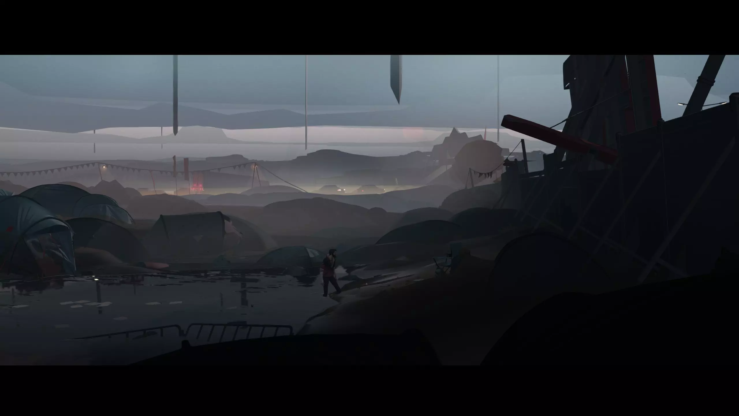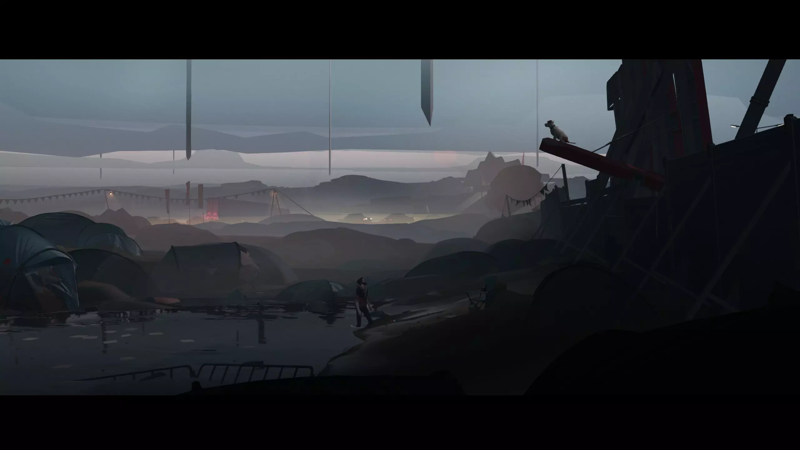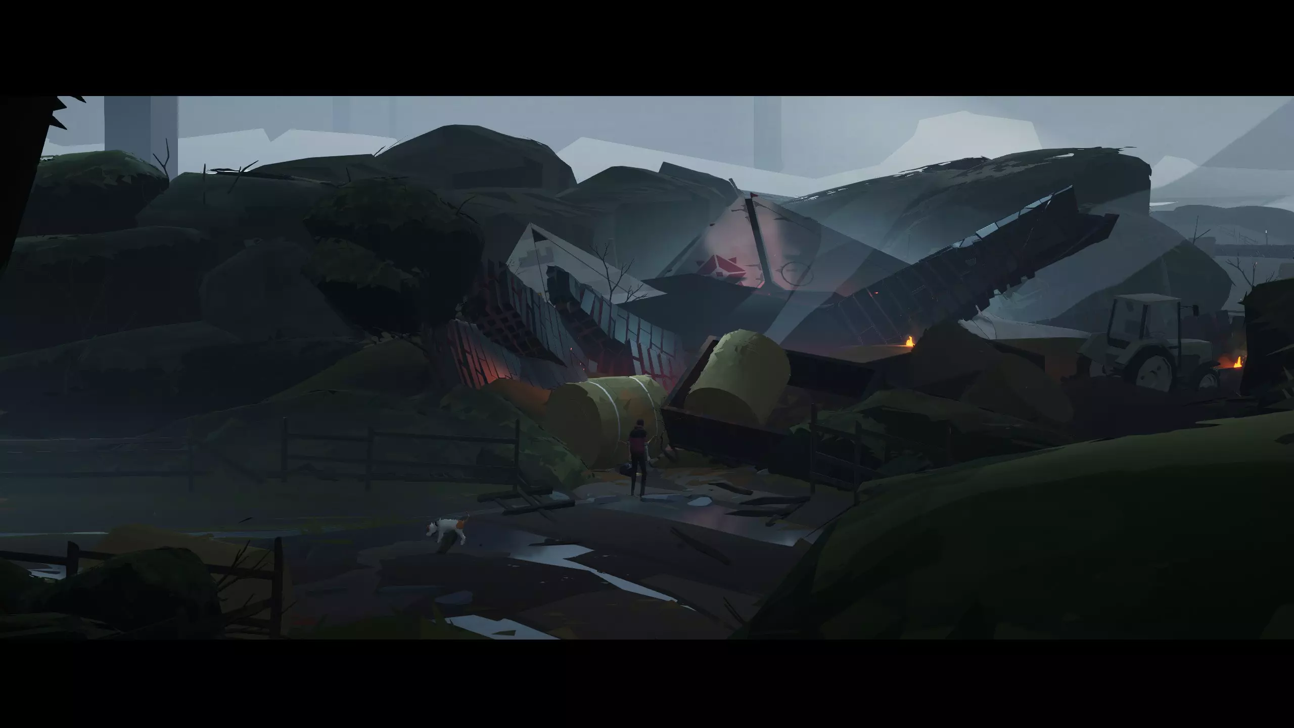“他很久才回来……” 可以跳过。 视频标记:31:05。第5章,第1集。穿过有大红字的公路,从平台上跳下去。走过水洼,靠近倾斜的路灯。然后回到平台查看你的狗——之后你会获得成就。