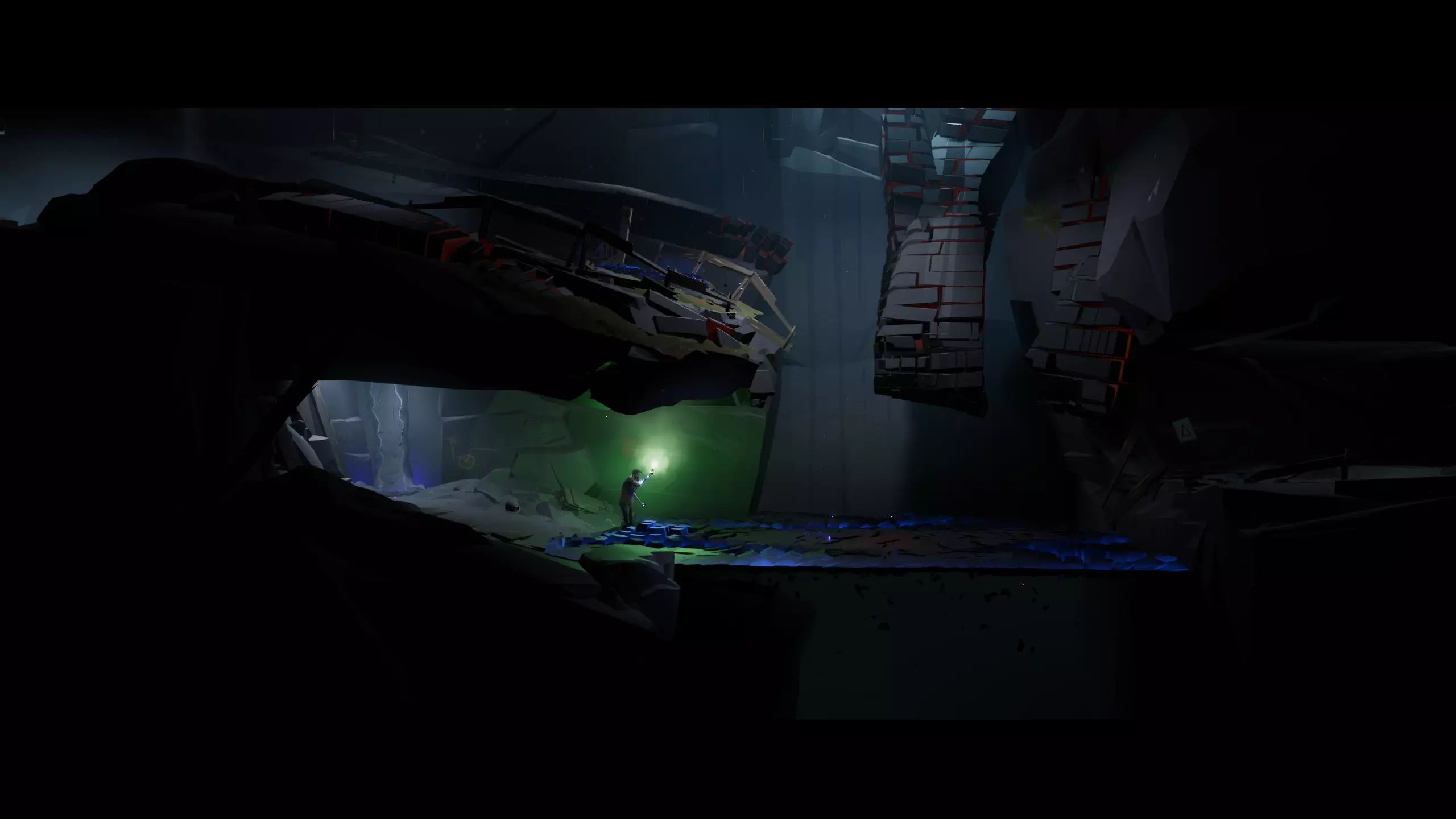 结识新朋友。 可以跳过。 视频标记:1:10:30。第六章,第七集。借助棋子和能力乘矿车向上后,不要急于向左走向梯子。使用鼠标右键的另一项能力将水固化,然后走到另一边。穿过岩石上的洞口,在洞穴中找到外星人。