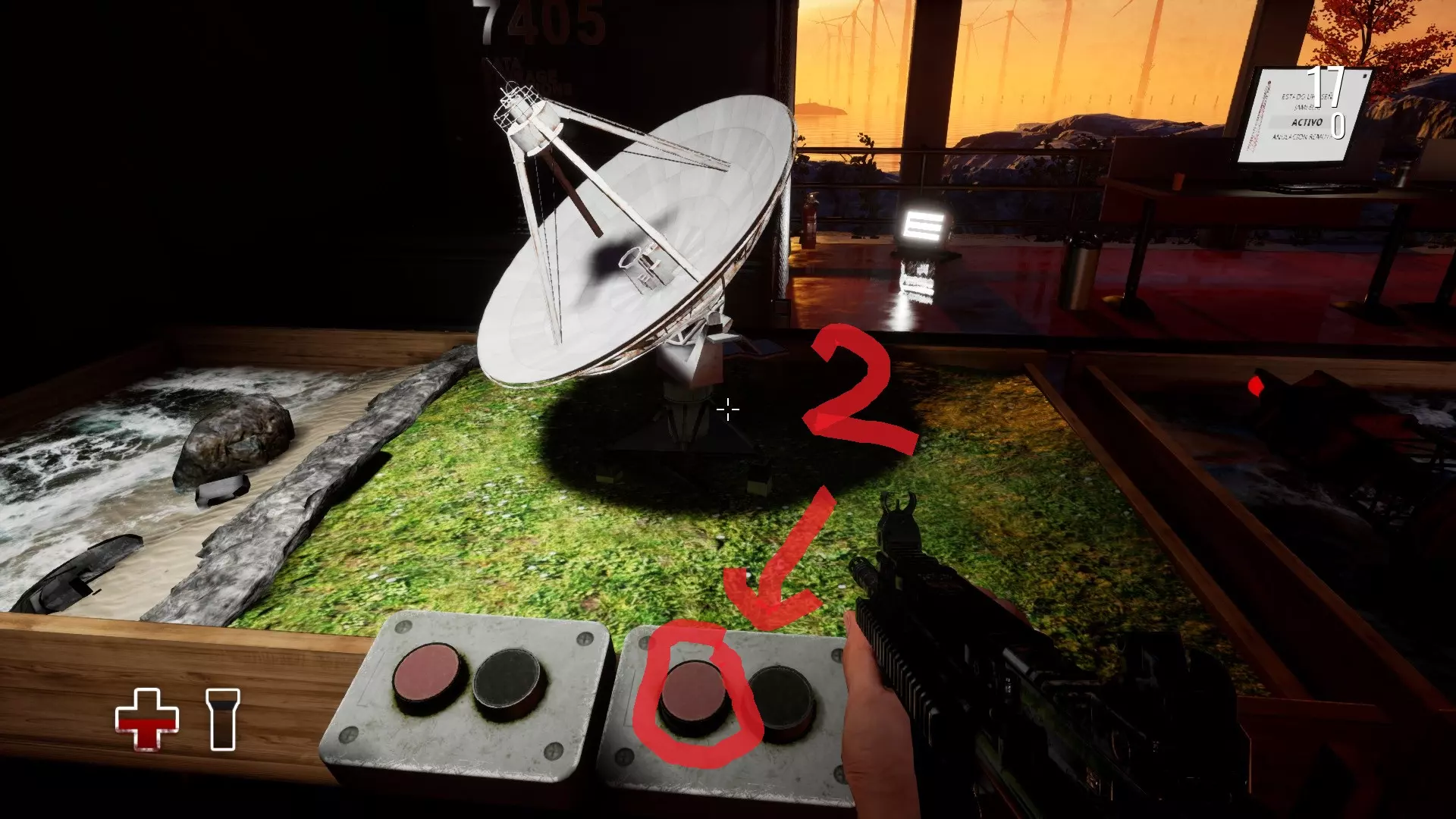 第二步 -在控制室里,我们会看到一个海滩模型和位于控制室中央的卫星。