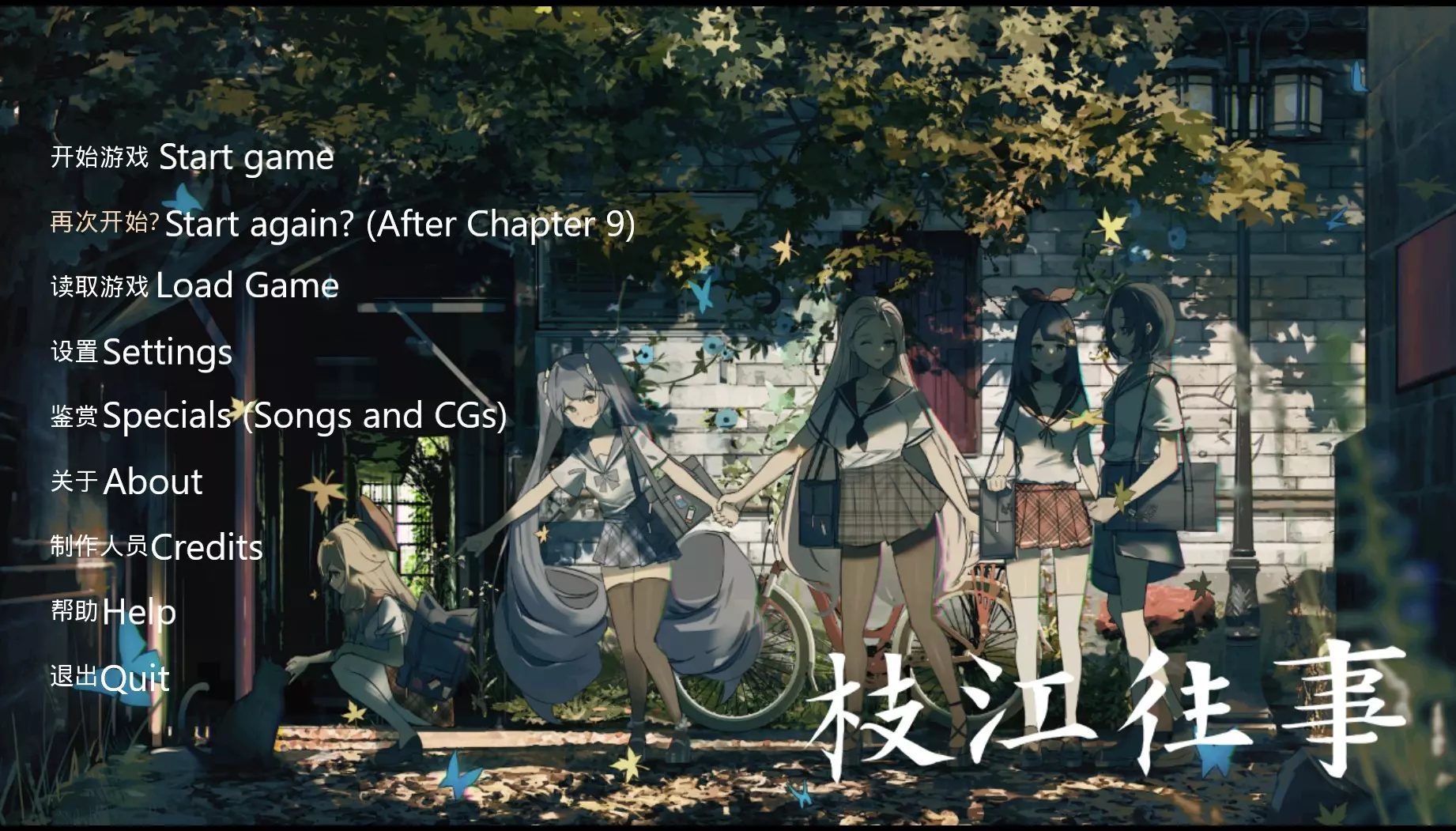 《枝江往事》是一款基于虚拟偶像团体A-SOUL的视觉小说游戏。开始前的所有图片均使用谷歌翻译进行翻译,同时参考了其他视觉小说的菜单进行对比。 100%完成游戏的大致时间:1小时。 开始前 标题