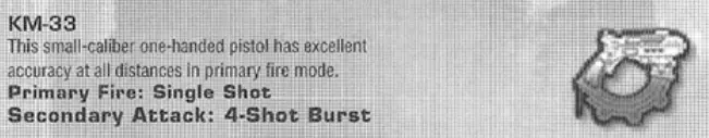 S.S.A.M. 维基 配音演员:克丽丝塔·斯旺 配音演员:卡梅伦·帕拉塔斯 人物关系 贝塔套装使用者 艾登·克朗博士 玛丽莎·福斯特博士 内森·塔克博士 S.S.A.M.(战略适应性元认知系统) 五、《时空飞梭》的世界设定 四、(A)近未来 四、(A)1. N.E.X.T.2. 四、(A)1.1. 阿尔法套装 四、(A)1.2. 贝塔套装 四、(B)1939年平行时空 四、(B)1. 阿尔法区 六、《时空飞梭》的游戏机制 七、《时空飞梭》的武器:枪械 枪械 《时空飞梭》共有9种主要枪械。每种枪械在战术优势、战术劣势和整体玩法上都各具特色。玩家在任何时候最多可携带3种枪械。武器可以从武器箱、军械库、最近死亡的NPC尸体上获取,或者在时间减缓或停止时从活着的NPC手中夺取。KM-33