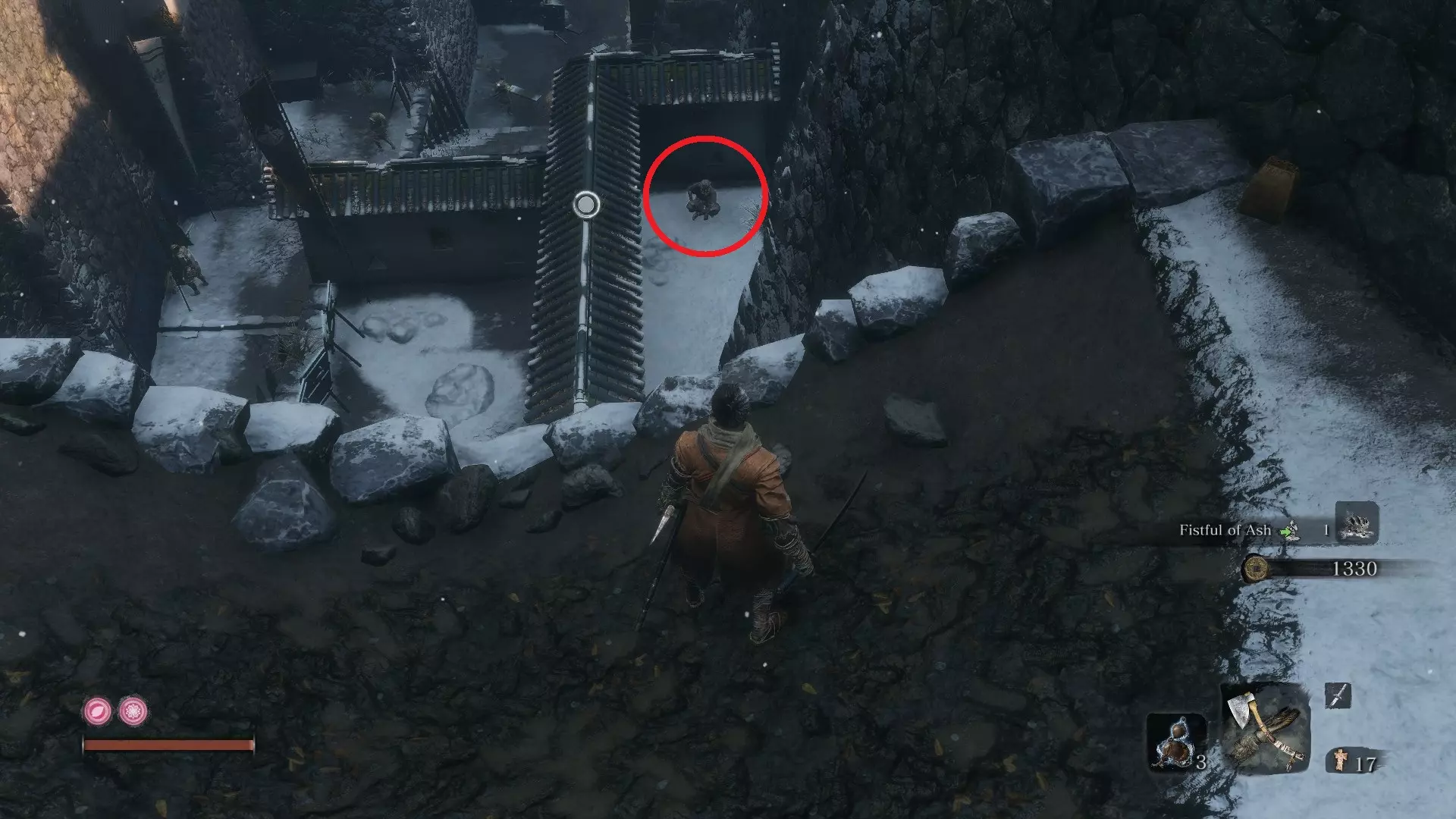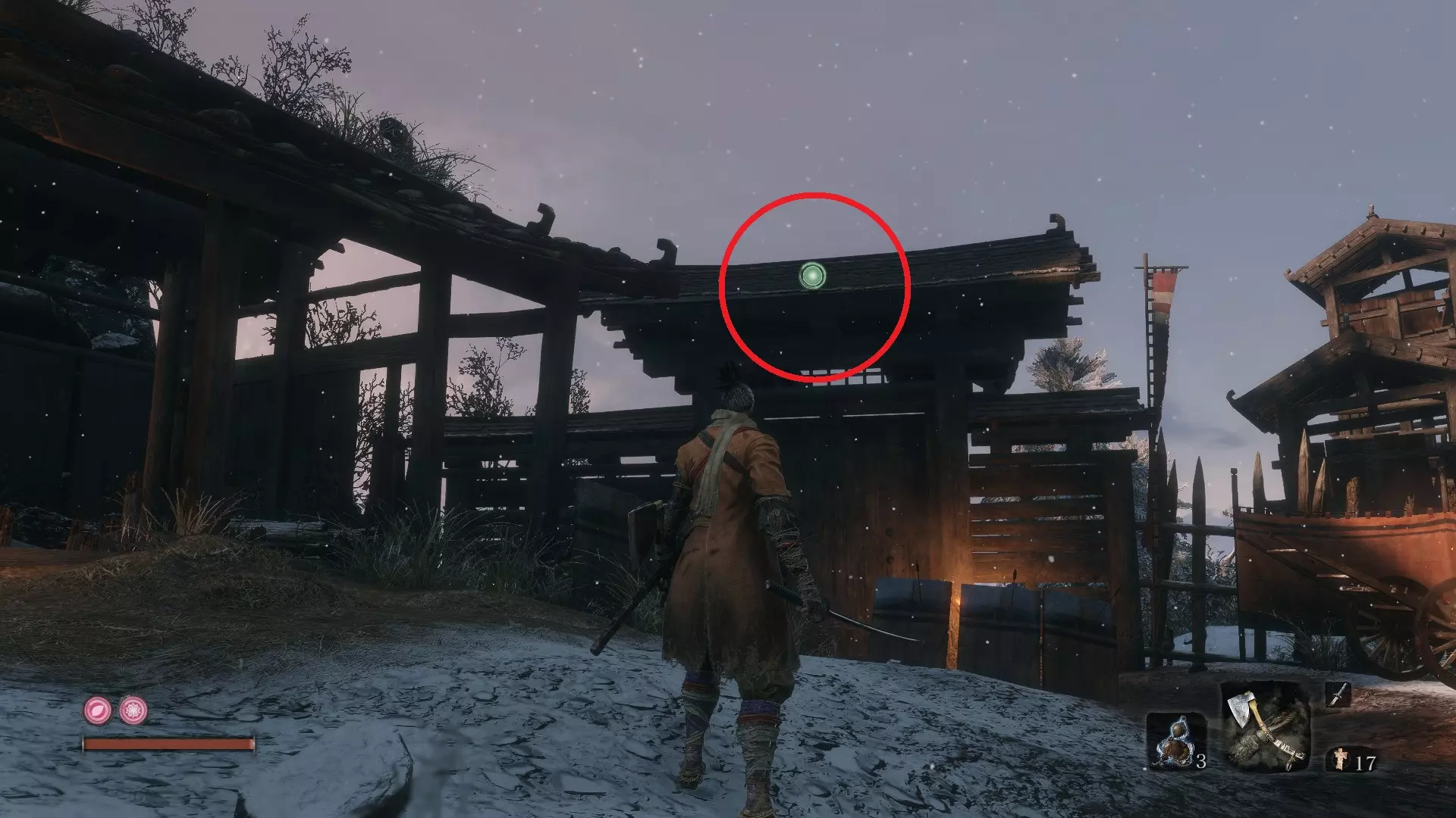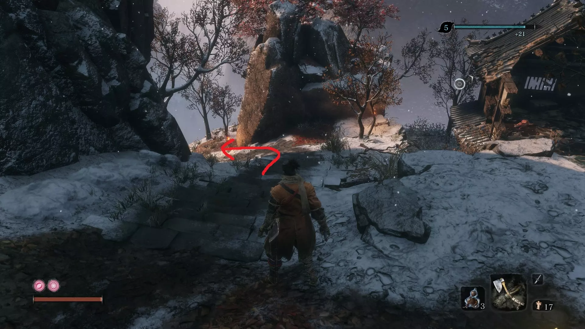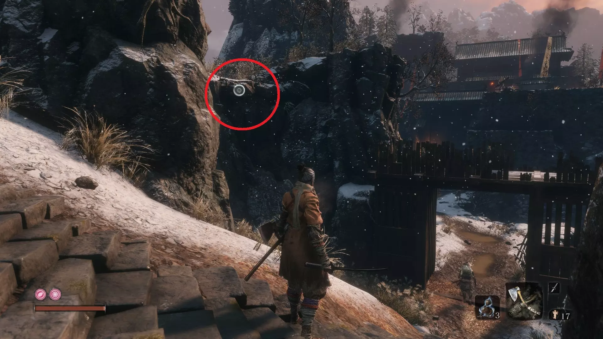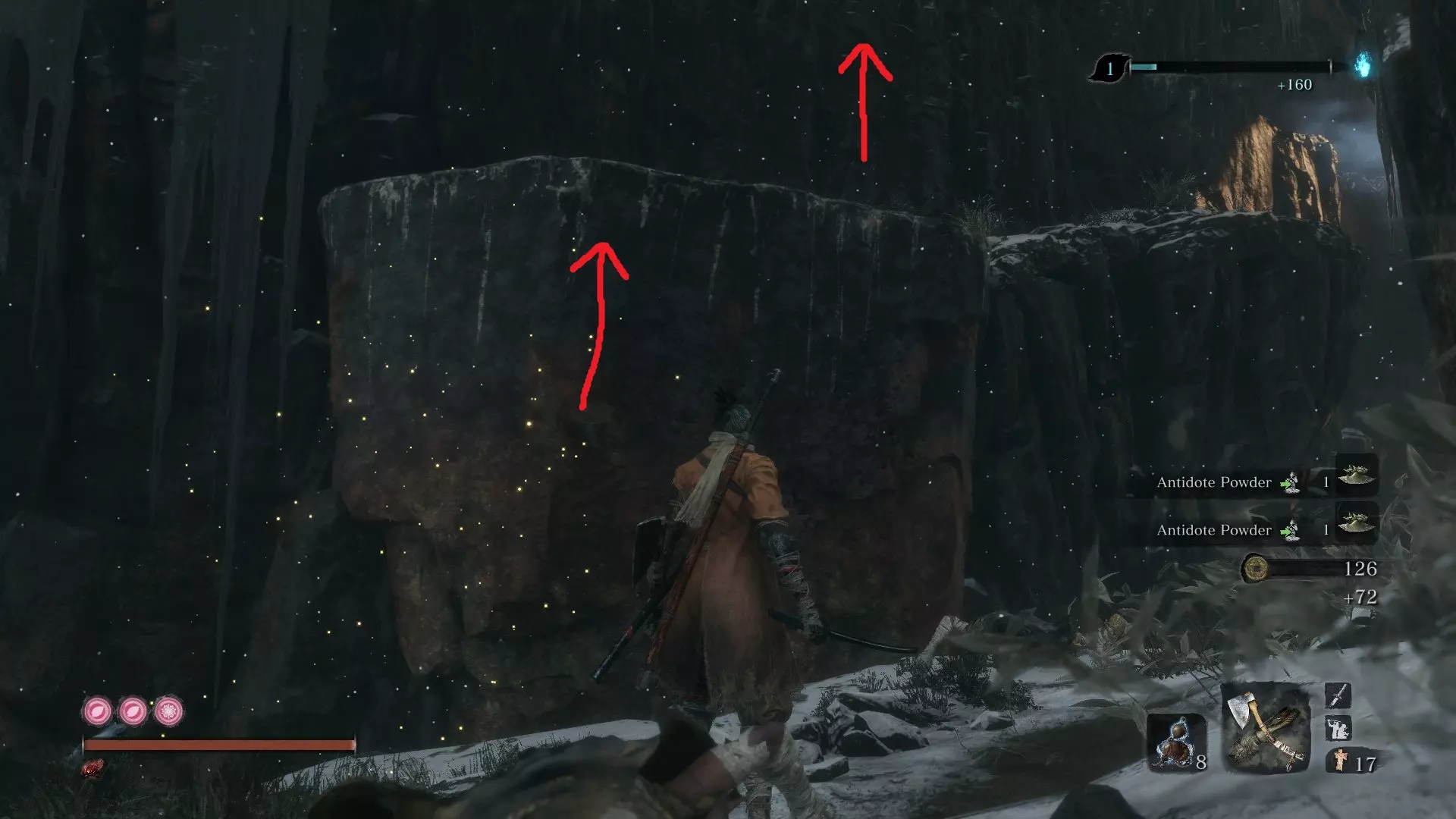 苇名城 佛珠 #9:苇名城 由精英怪【松本内藏助】掉落 具体位置:苇名城佛像处。直接登上长长的一段楼梯。 佛珠 #10:苇名贮水城区 由精英怪【苇名七本枪】掉落 具体位置:进入苇名城后,向左走前往贮水城区。贮水城区佛像前的敌营中可找到此精英怪。 佛珠 #11:苇名贮水城区 由精英怪【孤影太刀足】掉落 具体位置:从贮水城区佛像处,向左钩爪抓住树枝。你会荡向敲鼓的敌人。敲鼓者身后有一处悬崖。钩爪过去,会发现“友好的”武士。 佛珠 #12:废弃地牢入口 商人处花费1400金币购买。具体位置:从苇名城鬼佛处,跳下身后桥梁的左侧,钩爪到对面。来到前方的木桥处,继续前进并钩爪翻过墙壁。穿过那里就是废弃地牢和商人。 佛珠#13:上层天守阁 - 苇名道场 由苇名精英 - 佐濑甚助(小Boss)掉落。 具体位置:当你前往苇名城顶端弦一郎的位置时,必须穿过一个房间并与佐濑甚助战斗。击败他后即可获得佛珠。 金刚山仙峰寺 佛珠#14:仙峰寺 - 修验道 由铠甲武士(小Boss)掉落。 具体位置:在仙峰寺第二个鬼佛之后,你会发现一座长桥。这是一个不可错过的地点,是游戏流程的必要区域。 佛珠#15:仙峰寺 - 寺院境内 击败长手蜈蚣仙云后掉落。 具体位置:寺院境内佛像处。沿着最右侧有敌对狼的路径前进,然后爬上寺庙屋顶。到达后,你会发现下方有一座门开着的较低寺庙。里面就是仙云以及你的佛珠。 佛珠#16:仙峰寺 - 寺院境内 从寺院境内的雕佛师佛像处跳入有两条宝藏鲤鱼的池塘并潜水。(需要呼吸技巧!) 水生村 佛珠#17:阵屋敷山谷 具体位置:阵屋敷山谷佛像处。到达该佛像后,立即转身。你会注意到一个有两个远程敌人的钩爪点。跳过去并消灭他们。在你的左侧,你会注意到两面可二段跳的墙壁。攀爬这些墙壁,然后向前移动并贴紧墙壁。当你到达突出的岩架时,就能找到你的【佛珠】。