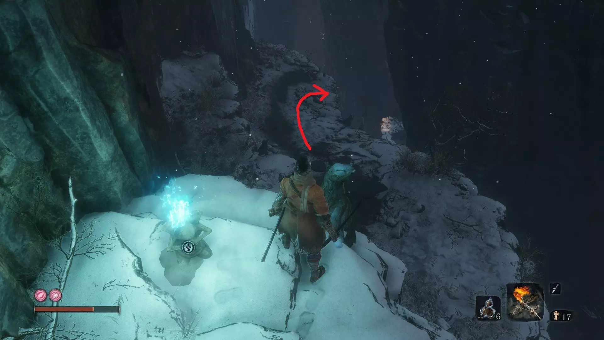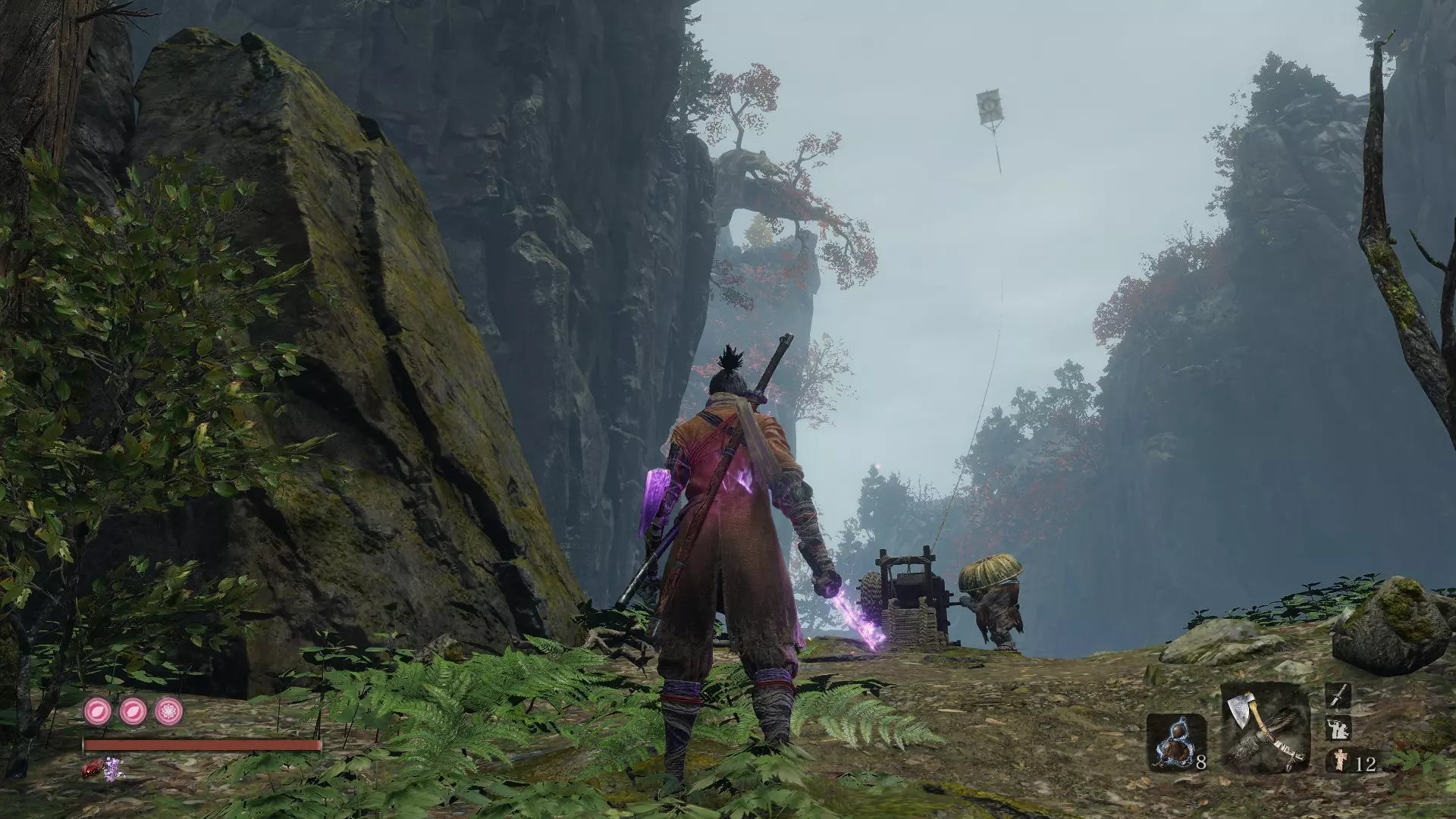 【Great Serpent】击败巨蛇 如果你还没完成与那条巨蛇的第二次互动,现在就去完成吧。 从九郎处获得【Gun Fort Key】后,穿过【Sunken Temple】。 打开你与爪形敌人战斗位置正后方的门。 跑过桥梁,直到巨蛇冲破桥面,将你坠入水中。 沿着最左侧的墙壁快速游进洞穴。 找到【Riven Cave】的佛像,然后返回【Senpou Temple】。 击败【Folding Screen Monkeys】并获得【Mortal Blade】后,你将解锁新的忍术:【Puppeteer Ninjutsu】。装备此忍术,前往【Senpou Temple】的传送点。在传送点外面,你会注意到空中有一个风筝,旁边坐着一个“老鼠”。 绕到“老鼠”身后,对他施展忍杀。在你开始发动忍杀的动画后,很快会出现另一个忍杀机会。完成这次忍杀后,你将触发忍术,这个男孩就会免费为你放风筝! 不用担心操作失误。只需在佛像处休息,他就会重新出现。
