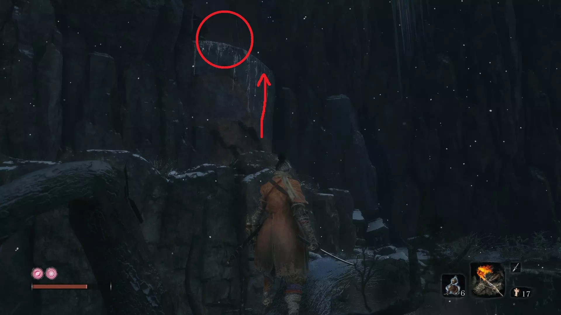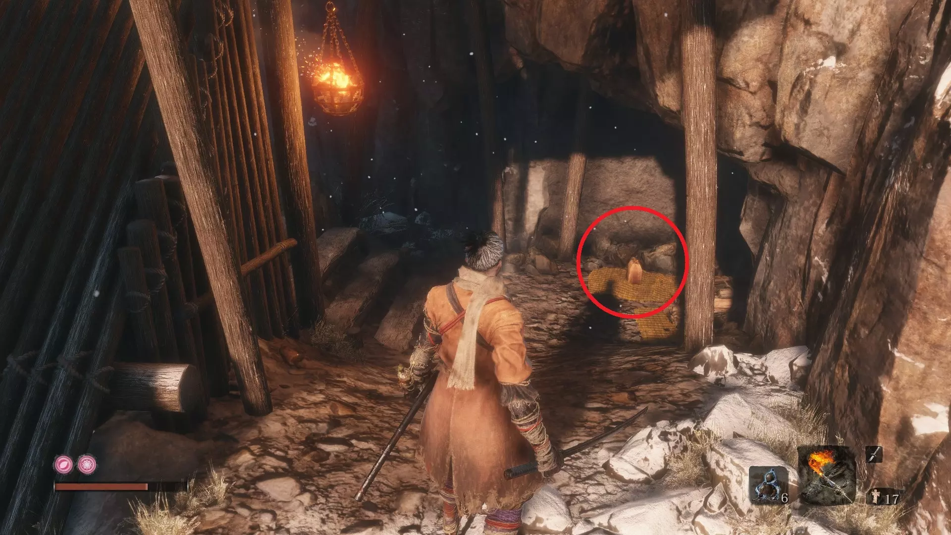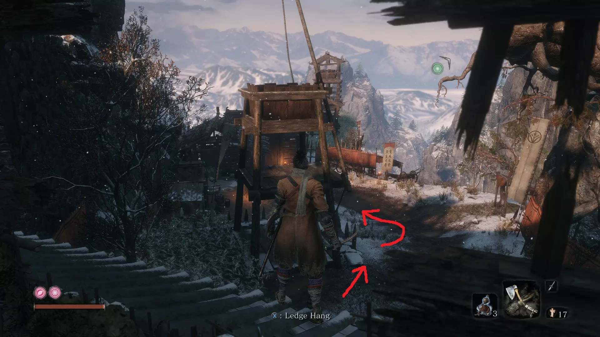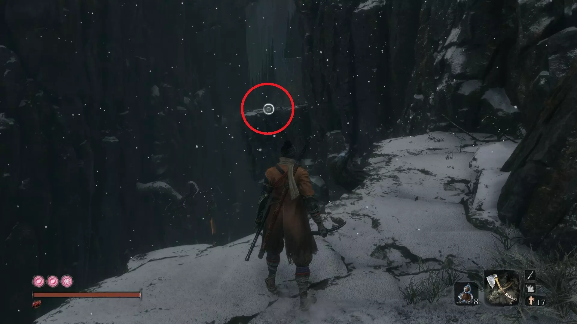 金刚山·仙峰寺 葫芦种子#6:金刚山·仙峰寺 获得第一个仙峰寺鬼佛后,沿着小路前进,会看到十几个僧人漫无目的地游荡。在这片区域的后方有一座大型建筑。悄悄靠近建筑,你会发现可以钩爪抓住天花板进入。一个有三个僧人的房间里藏着你的种子! 坠落之谷 葫芦种子#7:坠落之谷 - 社下山谷 到达社下山谷鬼佛后,按正常路线前进。钩爪抓住一次树枝,再抓住另一根。右侧是主线流程,但我们要先向左爬上可悬挂的墙壁。 爬上墙壁后,会找到另一个钩爪点,抓住它前往另一面墙。向上攀爬,就能在顶部发现一间小屋。里面有一些不错的物品,还有另一颗葫芦种子,可以增加你的葫芦瓶数量!