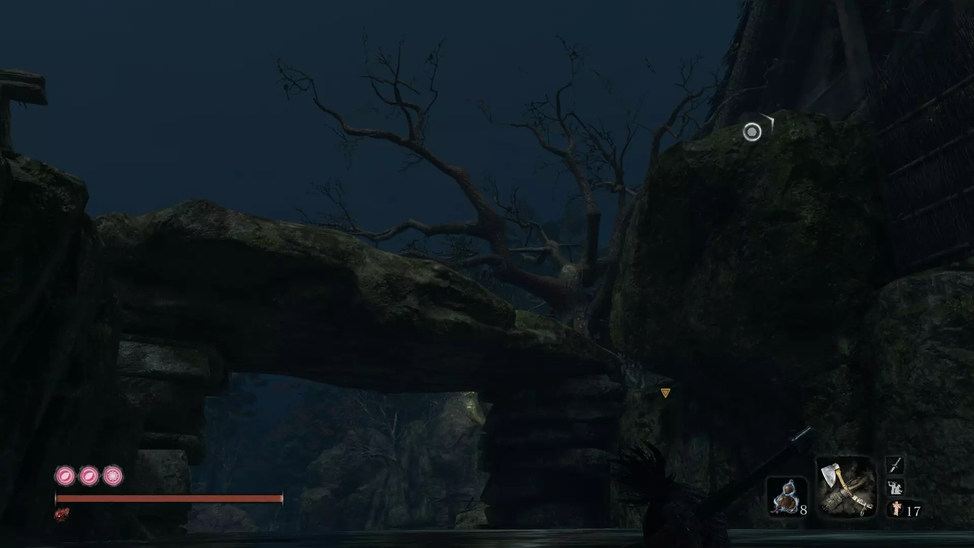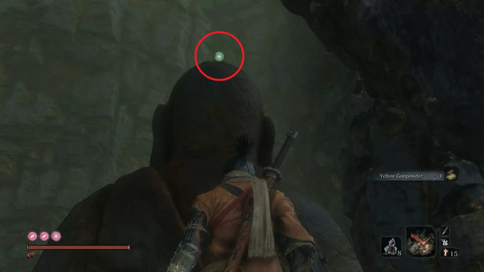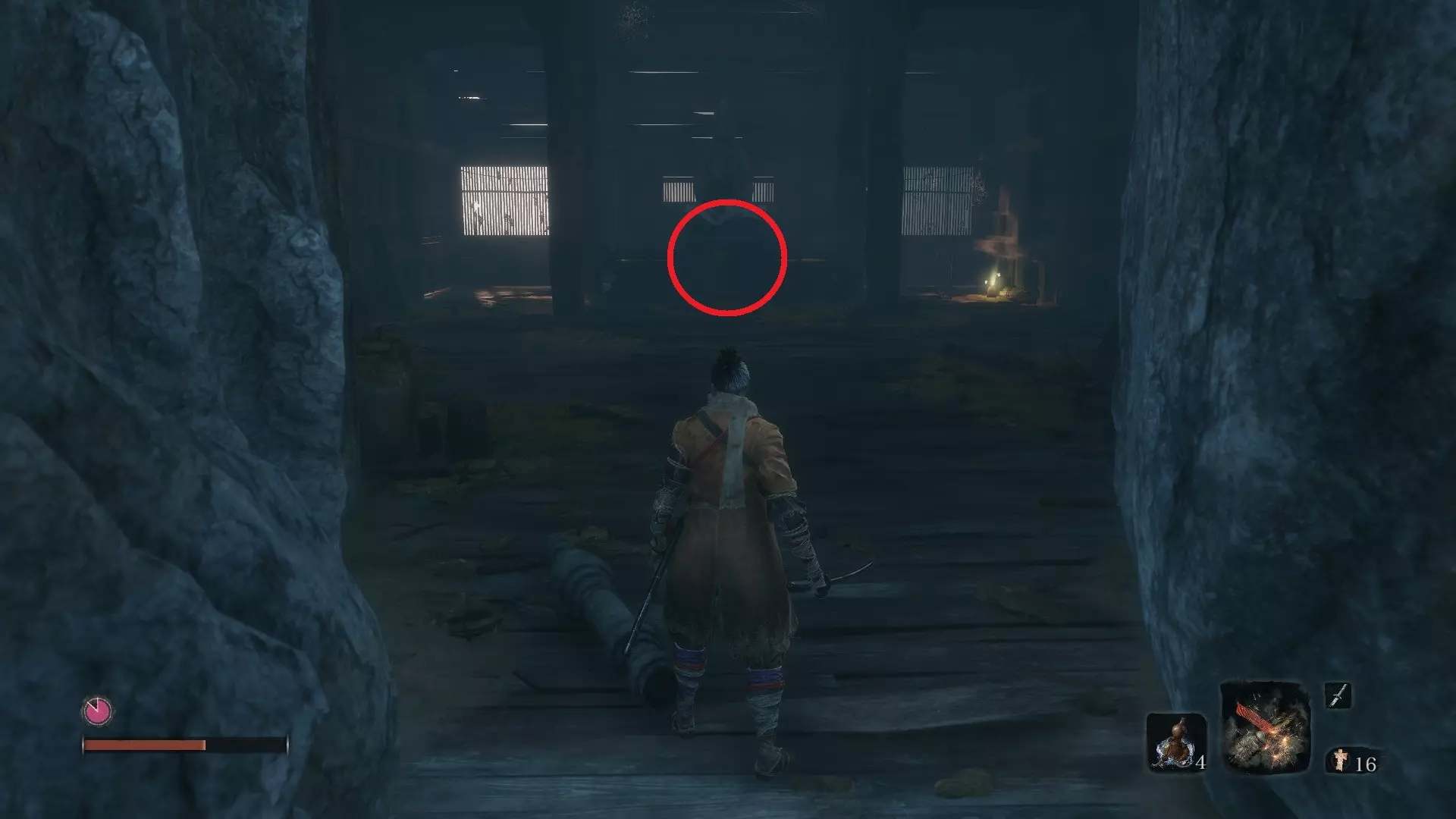 沉陷神殿 义手忍具 #9 大扇子:坠落之谷 - 铁炮要塞 从铁炮要塞的鬼佛处出发,你会发现正前方有一个通往下方的小隧道。向下走,进入一个小房间,你会遇到长臂蜈蚣·仙云。没错,这就是它的真名。 击败该首领的技巧 这是我目前遇到的最烦人的战斗之一。它双手各装备着一只巨大的爪子,能够通过攻击对你进行连续击晕,等你反应过来时,可能已经死了两次了。 当它开始攻击时,你的第一反应可能是逃跑并等待攻击间隙进行刺击。听我的,这个间隙非常短暂,这种策略几乎没什么用。考虑对每一次爪击进行弹反(不是格挡)。每次的节奏都一样,多试几次你就能掌握了。你的目标是积累架势值直至可以发动忍杀,这是最简单的方法。如果你还是觉得困难,烟花筒能让他短暂眩晕,足够你趁机砍上几刀。不过我之前也说过,别贪刀!解决他之后,你会在他正后方找到道具。