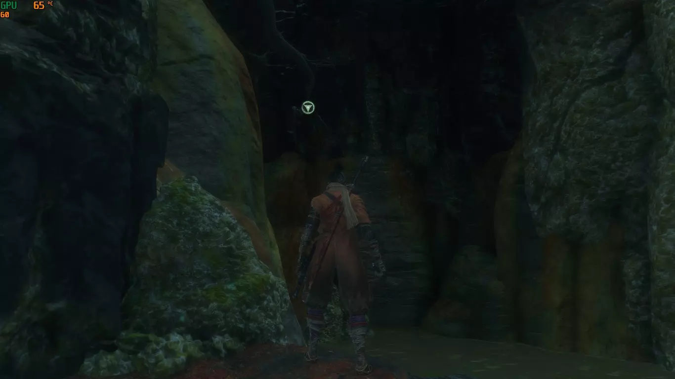 注意潜伏在周围的一些敌人(一名僧侣和一些爬行怪物),洞穴最终会通向两条不同的路,但它们的尽头是同一个出口。你可以通过钩爪抓住下方显示的顶部钩子到达该出口。