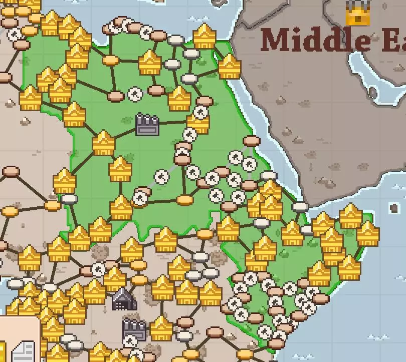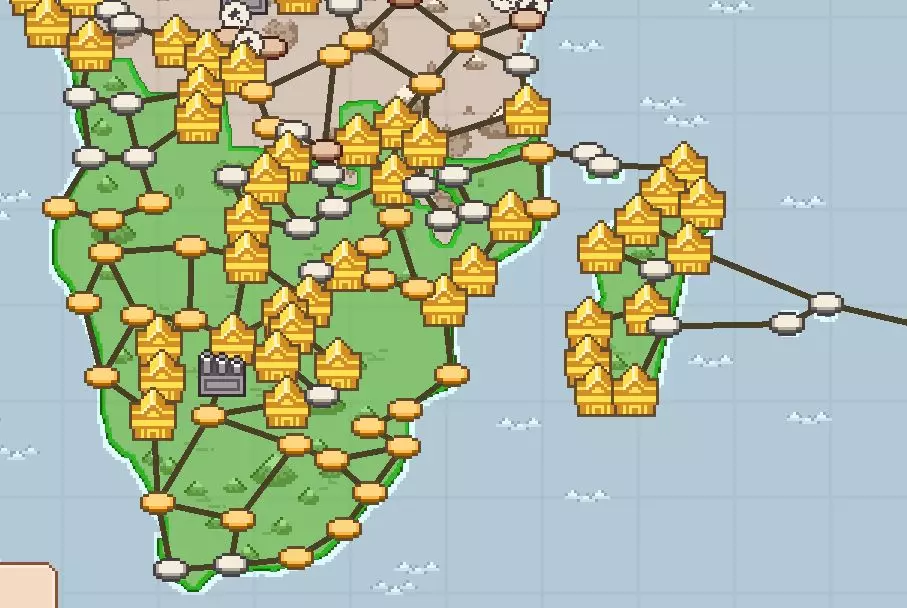 游戏目标: 购买或升级100个火车站 前往70个城市(该区域最多有78个车站) 购买1500个货物 车站可升级3次,升级费用分别为: 500 + 1000 + 5000 = 6500 1000 + 5000 + 10000 = 16000 5000 + 10000 + 50000 = 65000 50000 + 100000 + 500000 = 650000 在西非地区,无需购买成本超过16000的车站。该区域最多有78个车站,因此你需要建造相当数量的车站,但不必建造所有车站。尝试提前规划,并沿着该区域的边缘连接车站。货运目标在区域建成后最容易完成,你只需从北向南行驶,购买所有货物,待火车装满后再进行出售。 非洲东部的目标 所需物品及获取方式