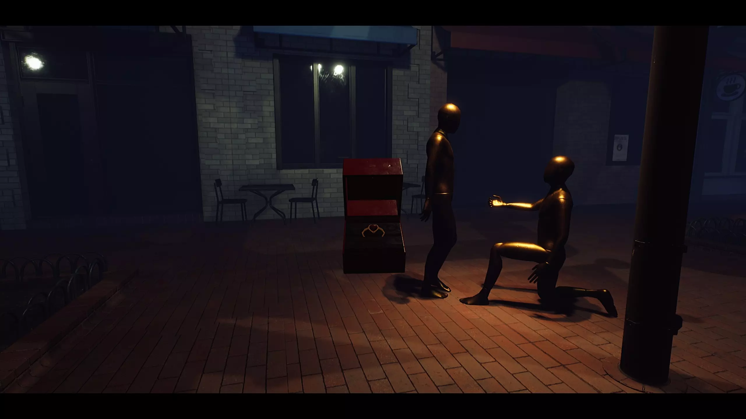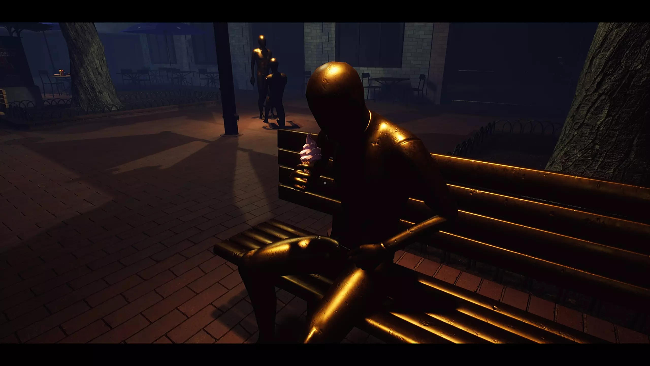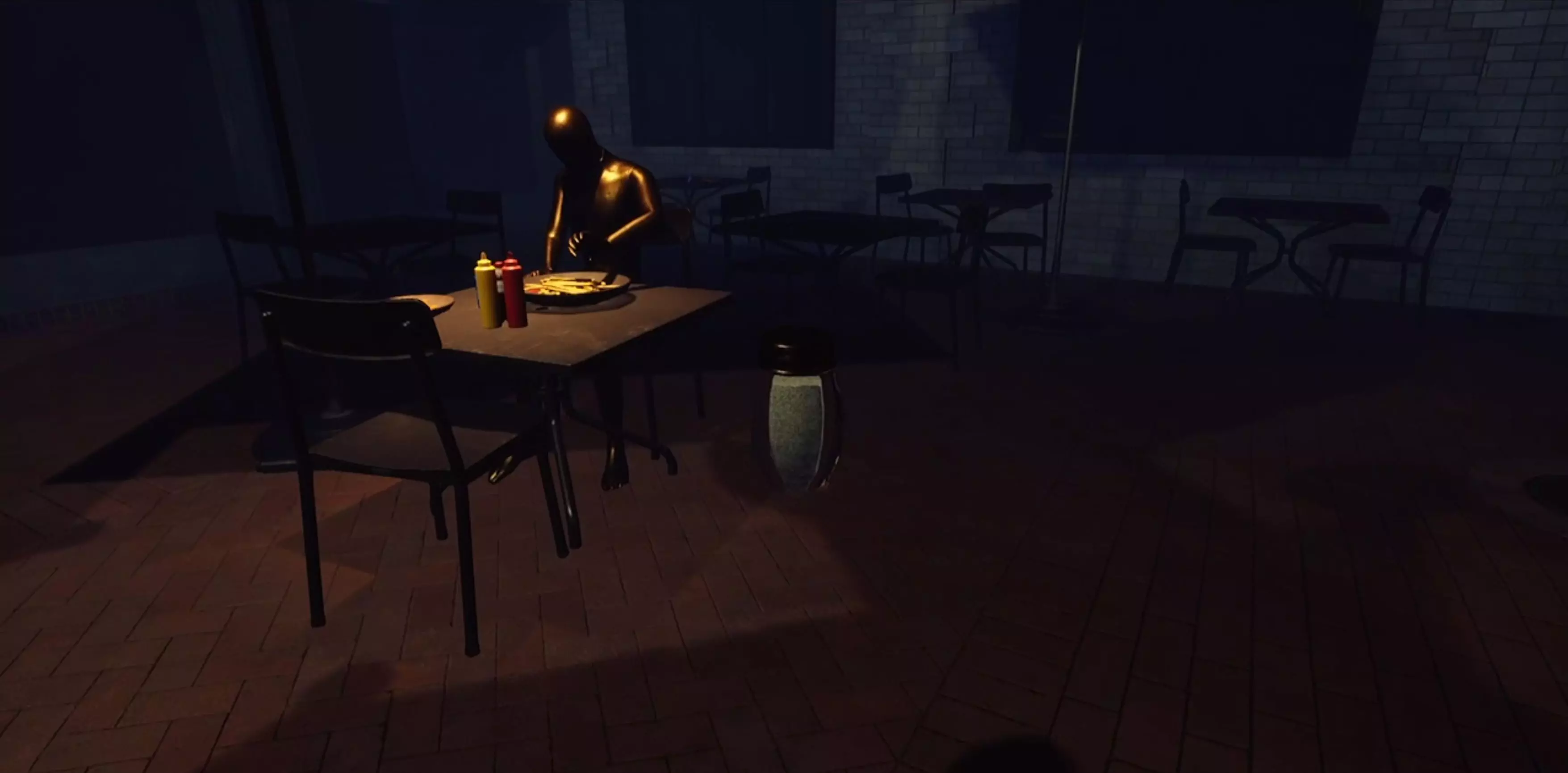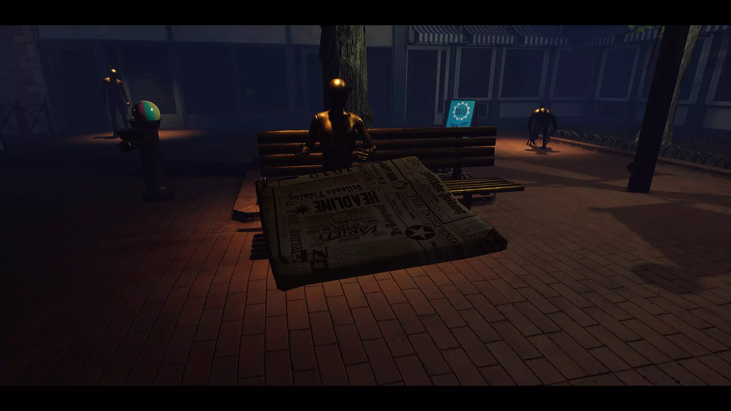 这本质上是一款隐藏物品游戏,因为从每个雕像各自的姿势中很容易就能弄明白它们需要什么。 提示:部分物品(乐器)的位置其实就在显眼处。 对于某些物品,你可能需要向上看。 有些物品可以在它们通常放置的地方找到。 有些物品是半隐藏的,所以你可能需要留意一下。 解决方案:所有所需物品的位置 1. 枪 - 从你进来的门那里,立即向右转,就能看到枪卡在一个画架式的菜单板上。 2. 小提琴/乐器 - 查看《屋顶上的提琴手》的广告。提示表明小提琴在屋顶上。 3. 球 - 在饮水机里。这相当明显。 4. 盐瓶 - 在靠近街头表演雕像的桌子上。 5.冰淇淋——这非常明显。你可以在冰淇淋摊找到它。 6. 报纸——在求婚雕像附近的桌子上 7. 手杖——在你进来的那扇门附近的灯柱上(它挂得很高,所以你要抬头看) 8. 盒子里的戒指——在街头表演雕像和“七折”广告招牌之间的一盆植物的叶子中 9. 雨伞——在出口门附近的一个遮阳棚下倒挂着 所有雕像及其各自物品的截图 1. 枪