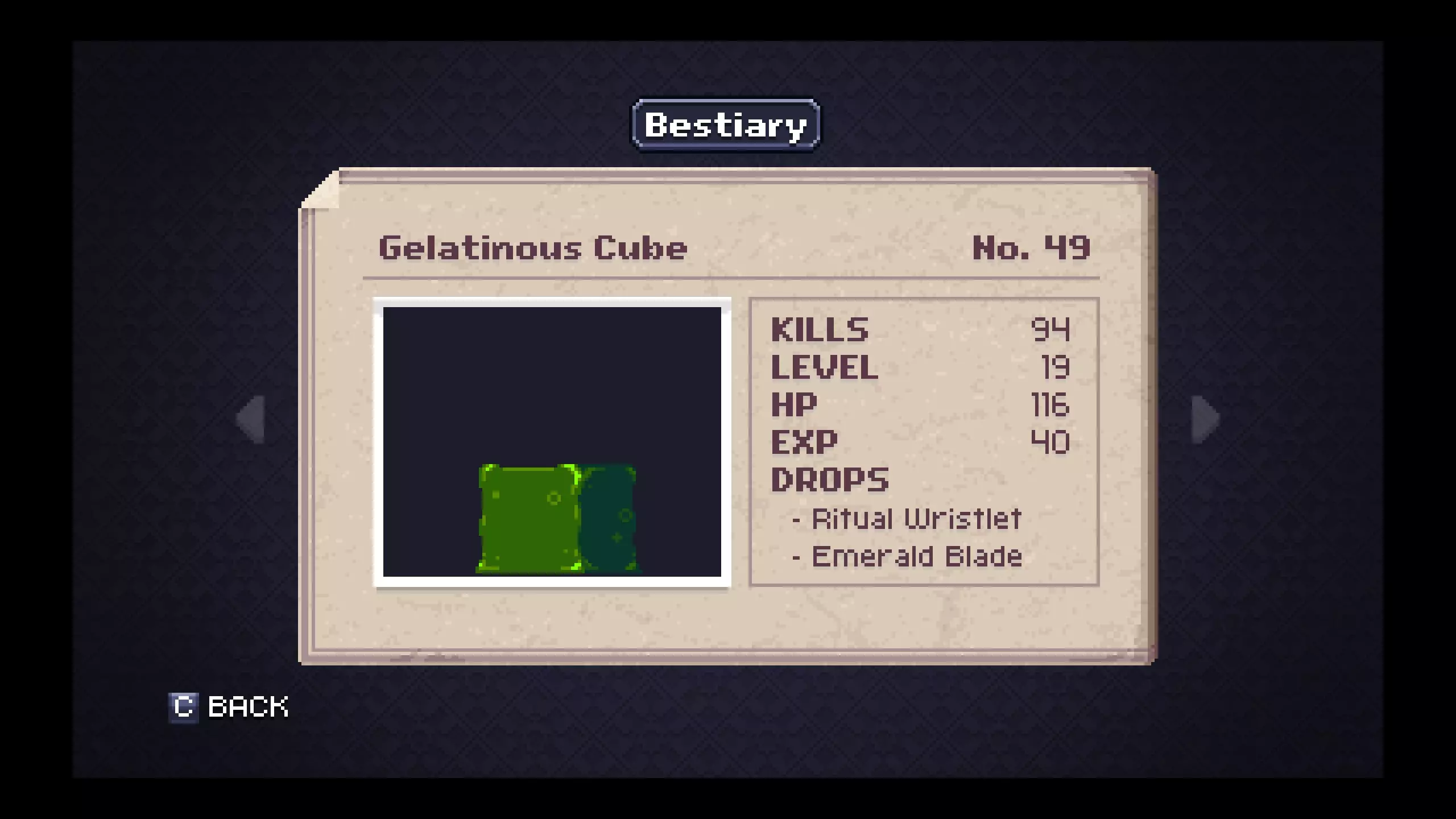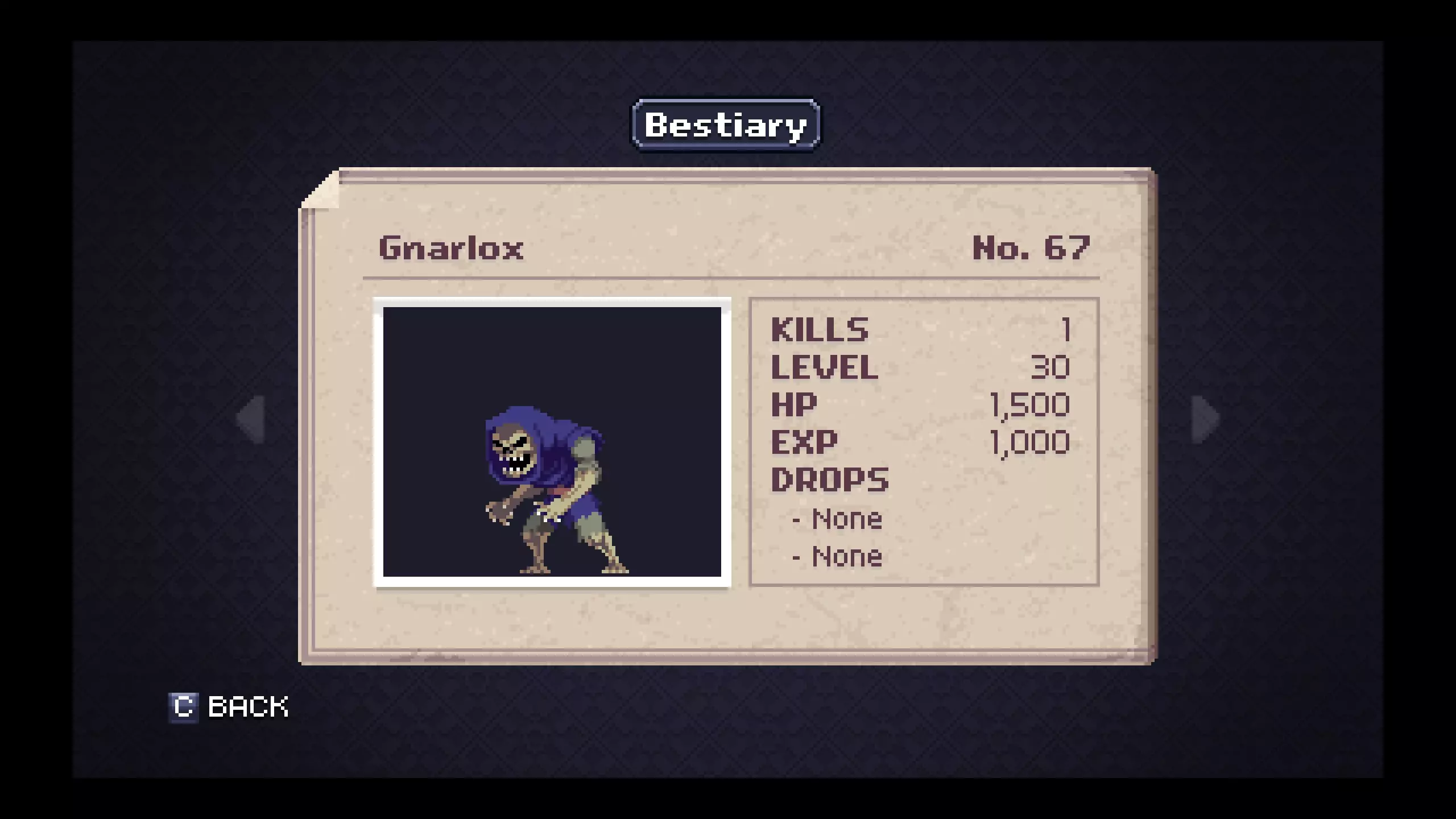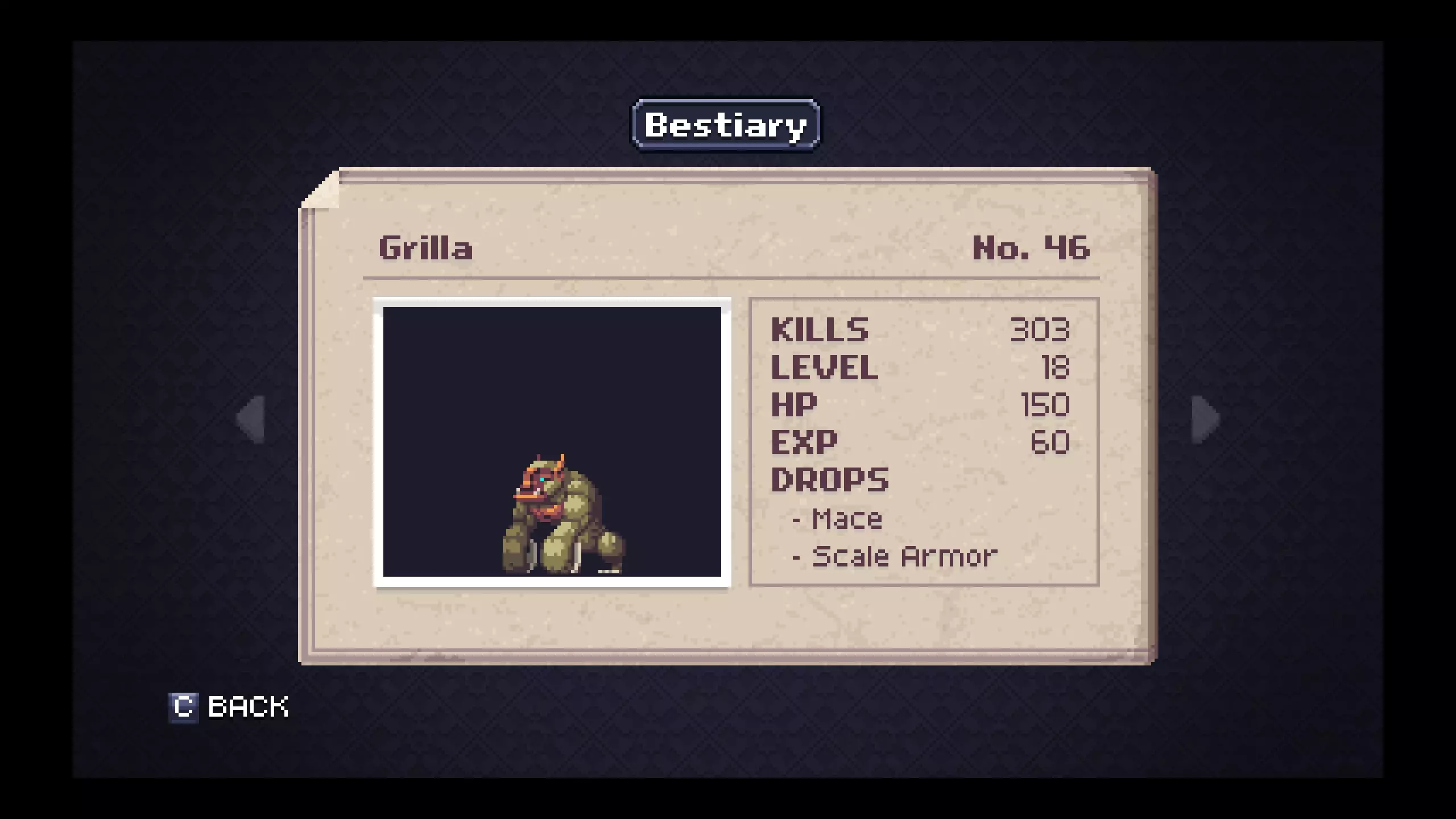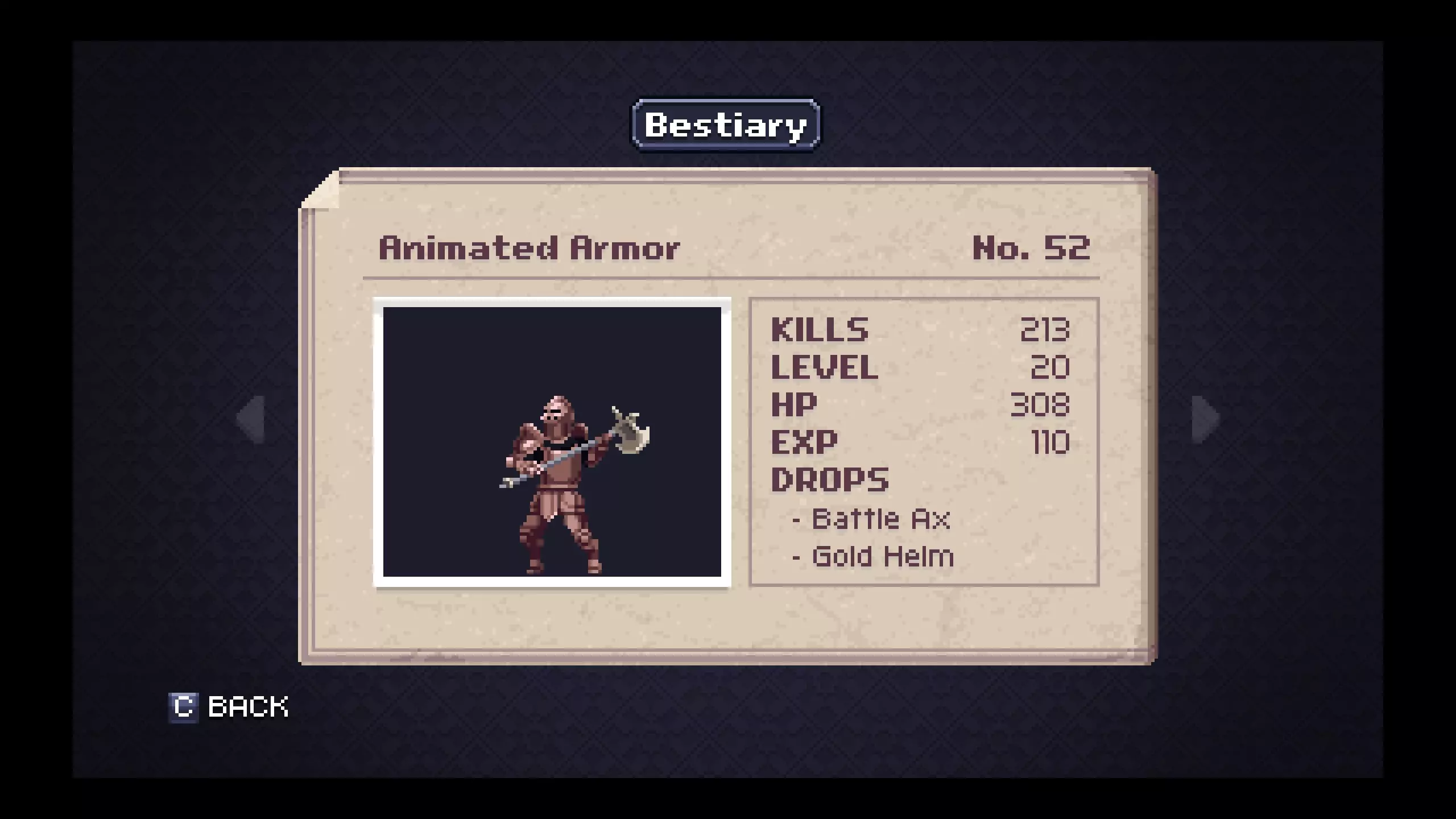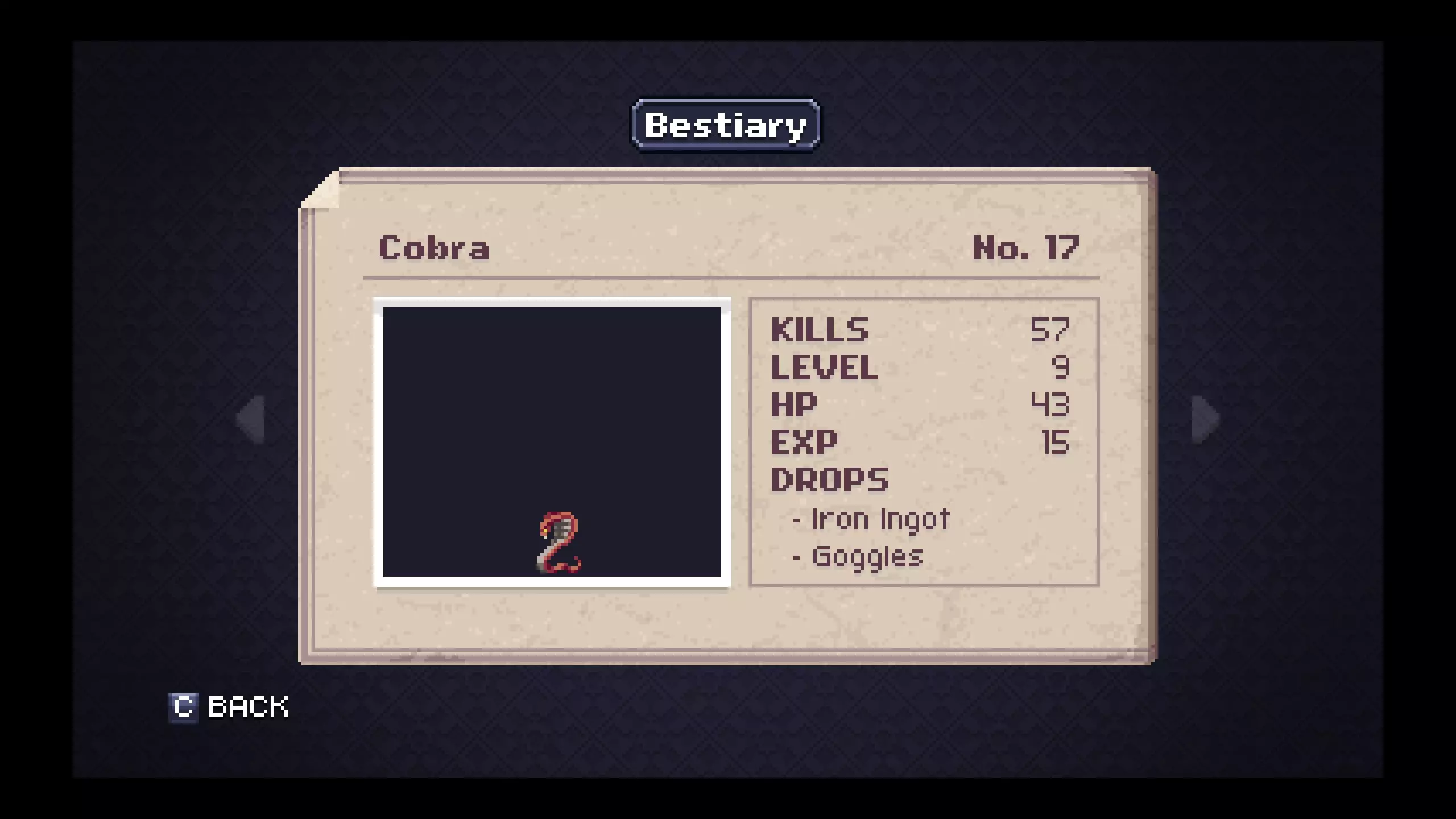 怪物图鉴 - 花园 笔记#41 - 魔像(Golem)是最低等级且金锭掉落率不错的敌人。金盔甲很可能是你在游戏剩余大部分流程中会使用的装备,所以现在制作它会很有用。 #43 - 黄蜂会掉落一个对速通玩家来说作用非常明显的有用物品。狐狸面具能显著提升你的移动速度,当你没有传送卷轴时,它会很有用。