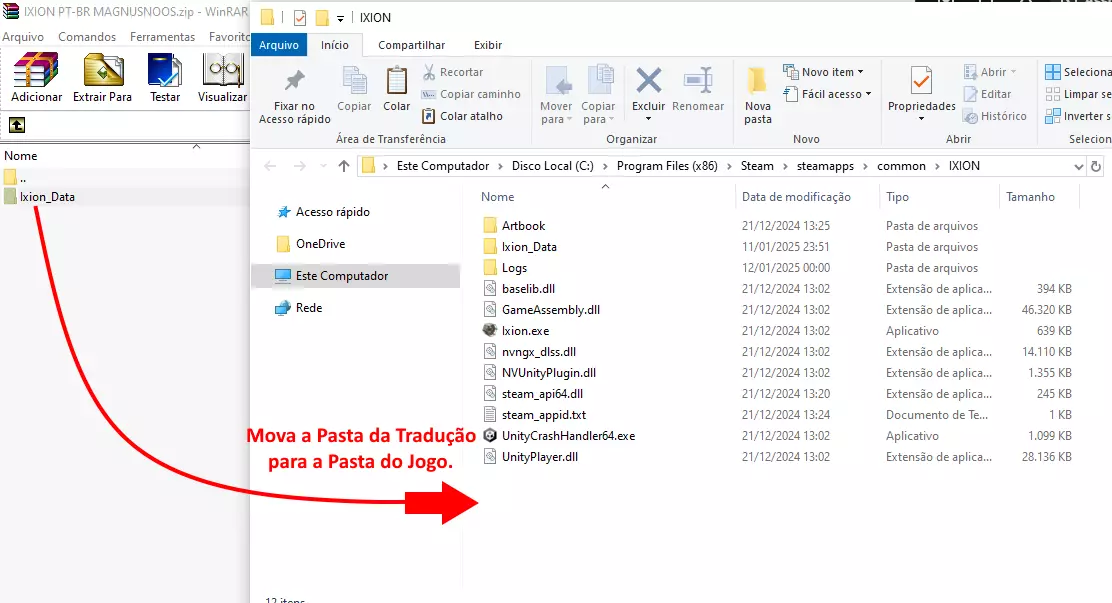 现在将翻译文件夹“Ixion_Data”移动或复制到你刚刚打开的游戏文件夹中。(当提示时替换文件)