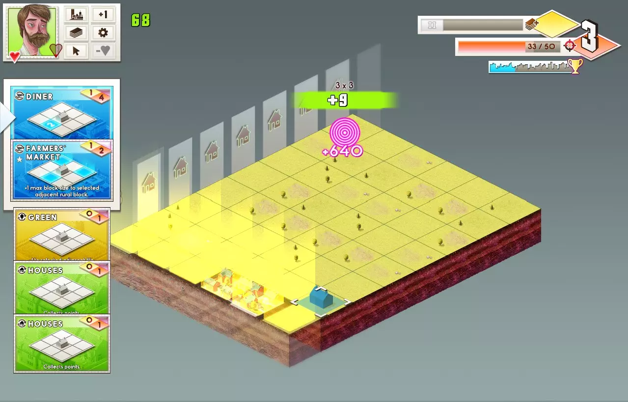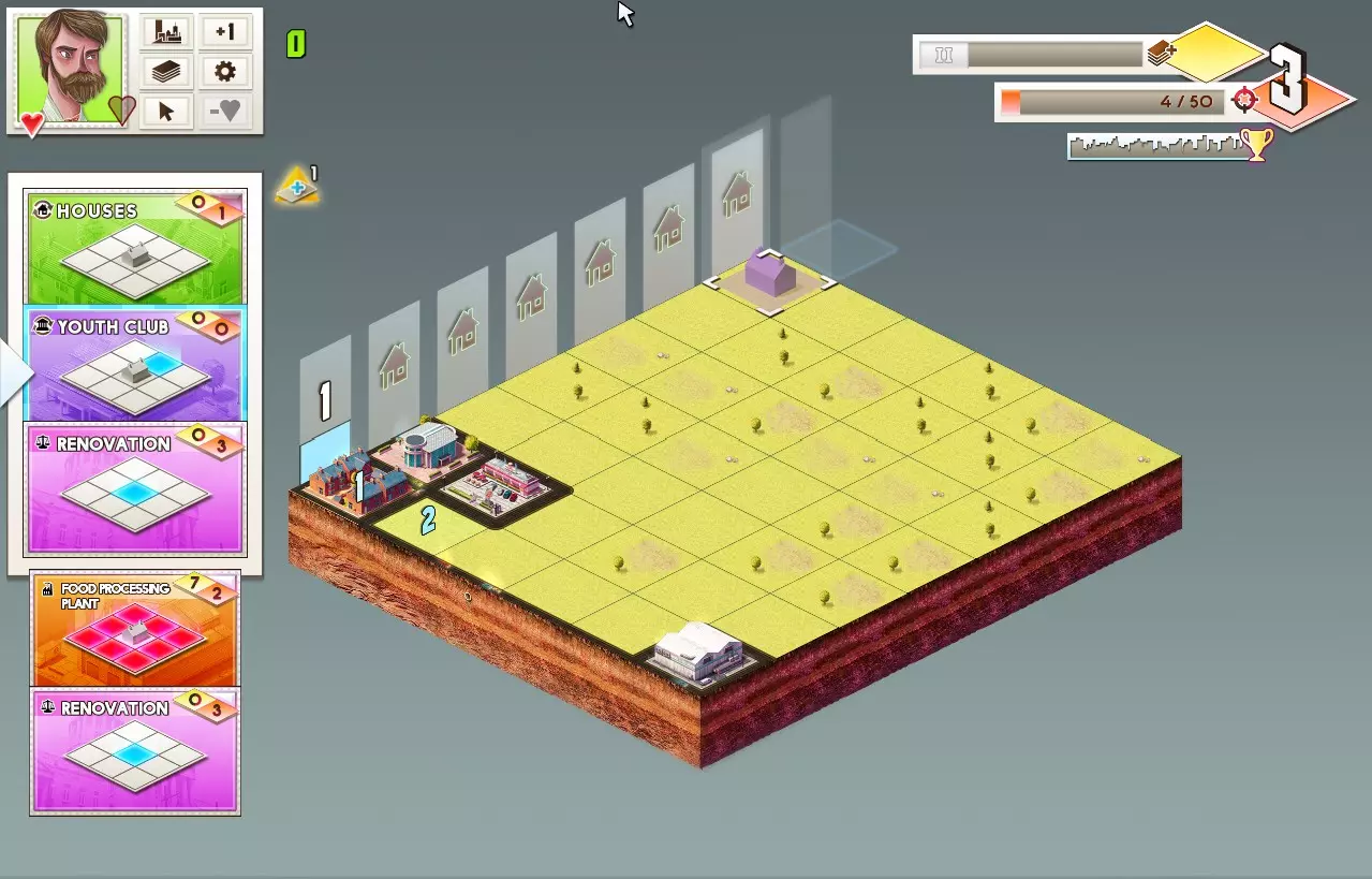 达成条件:清除一个价值50+的建筑。 你可以按照获取价值99建筑的指南来解锁这些成就。如果觉得有点困难,这里有一个最简单的方法(但非常依赖运气)来获得价值50+的建筑(这也能让你同时解锁两个成就)。 使用莱妮·汤普森在无尽单人模式中开始自定义游戏,初始购买次数设为6次。购买【Royale With Cheese】成就,然后进行游戏并提升科技等级直至达到四级。之后,清空游戏区域并尝试获得大量购买次数。【Six Seasons & a Movie!】技能对此会有所帮助。例如: