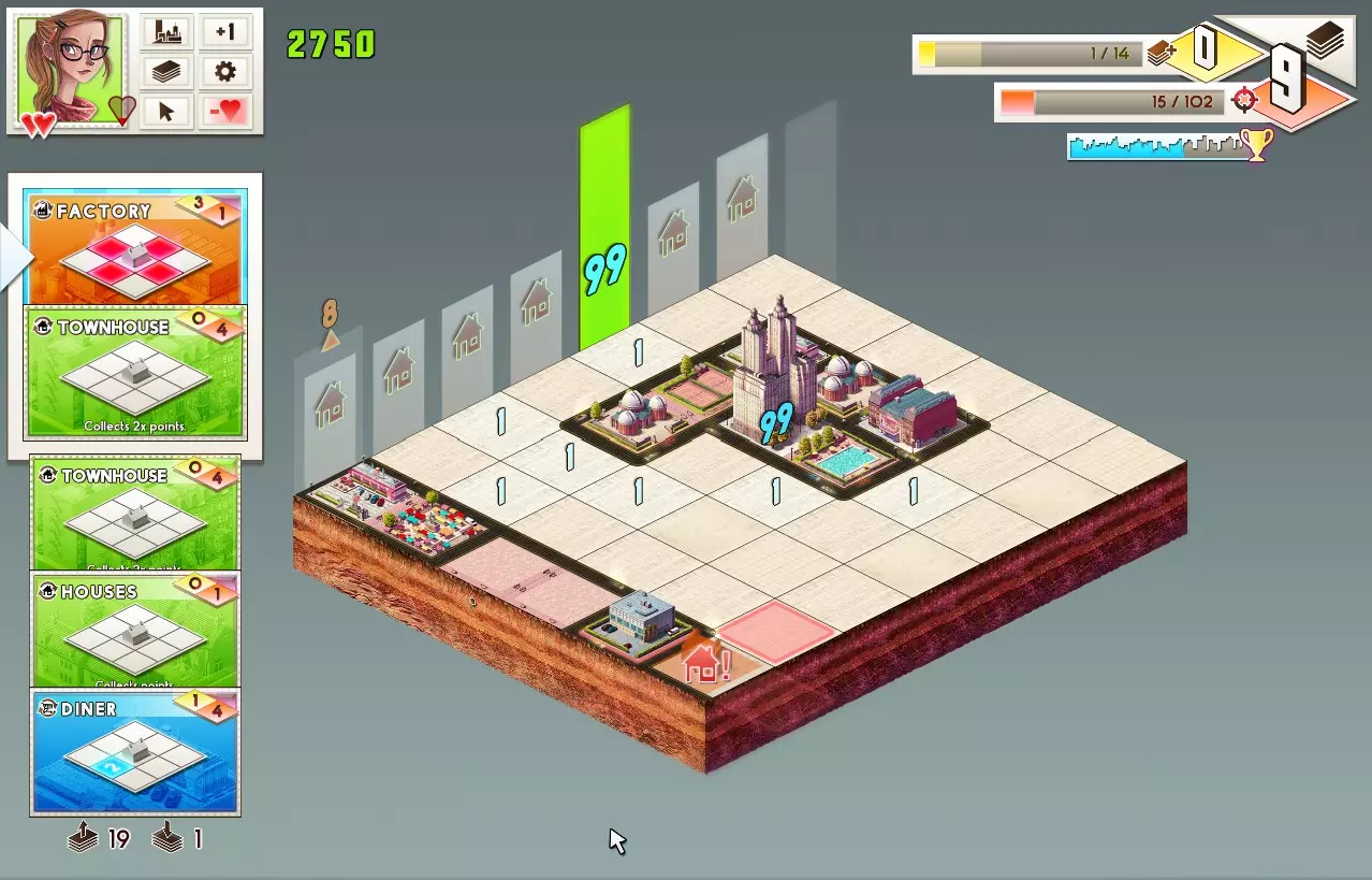 达成条件:清除一个价值为99的建筑。 根据你的运气,有很多不同的方法可以完成这个成就。我要提供的方法并非最简单的,但它的优点是完全不依赖运气。 使用兰妮·汤普森开始无尽单人模式的自定义游戏,初始拥有6次购买机会。购买“芝士汉堡套餐”技能,然后进行游戏并提升科技等级直至达到六级,但**不要购买四级的“六季加一部电影!”技能、四级的“看这个!”技能以及六级的“上流社会”技能**。