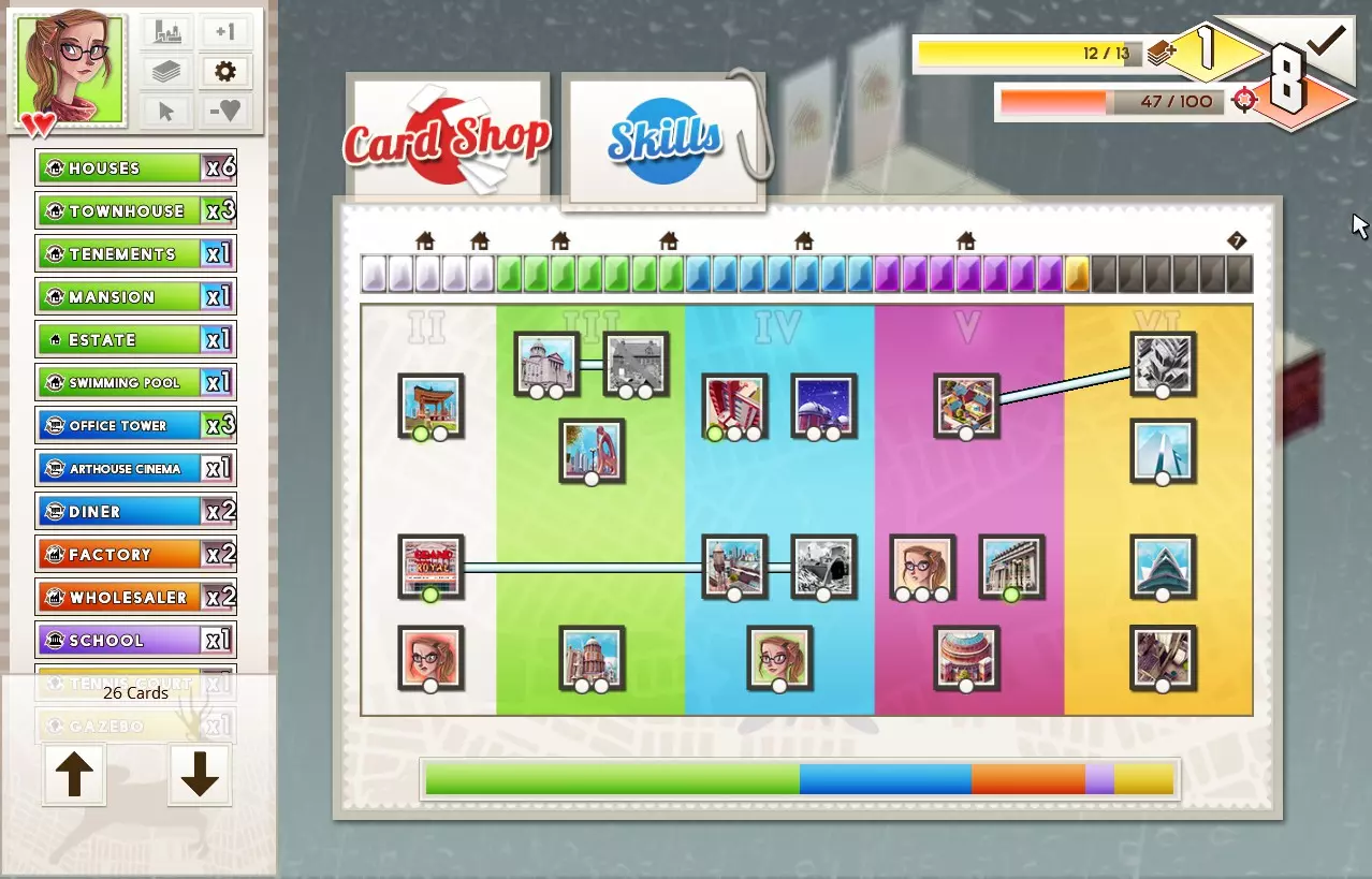 解锁所有卡牌。 要获得这些成就,你需要获取经验值。每次在战役模式或自定义模式中完成一局游戏,你都能获得经验值。如果是单人/经典游戏,你获得的经验值等于你的最终得分(如果得分不为负)。如果是对战游戏,你获得的经验值为最终得分乘以20~60,具体倍数取决于AI难度。 快速获取经验值的方法仍是进行无尽单人自定义游戏。游戏开始时,专注于制造连击。7倍连击可获得640分奖励。游戏后期,应更专注于在一列中获取大量分数,这样最多可获得99×99=9801分。每次升级(20级前)都会解锁一张新的初始卡牌。 1级:解锁【批发商】