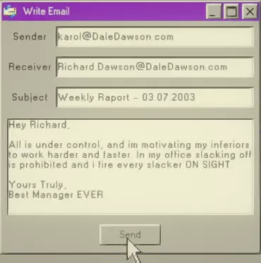 第一步:给老板发邮件 你跑到电脑前给理查德·道森发邮件,为什么呢?因为你是有史以来最棒的经理,你在邮件里大概会写自己掌控着一切,并且你的办公室里没人偷懒。