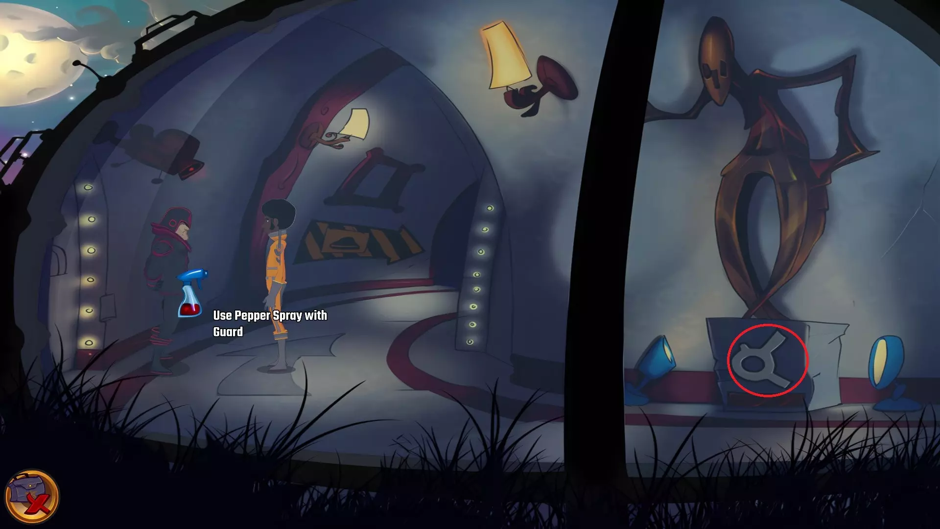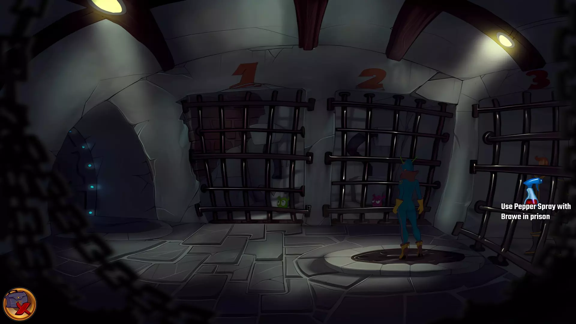 切换到丹尼。 在物品栏中,将辣椒和喷水器组合,然后交给露娜。 切换到露娜,进入下水道。