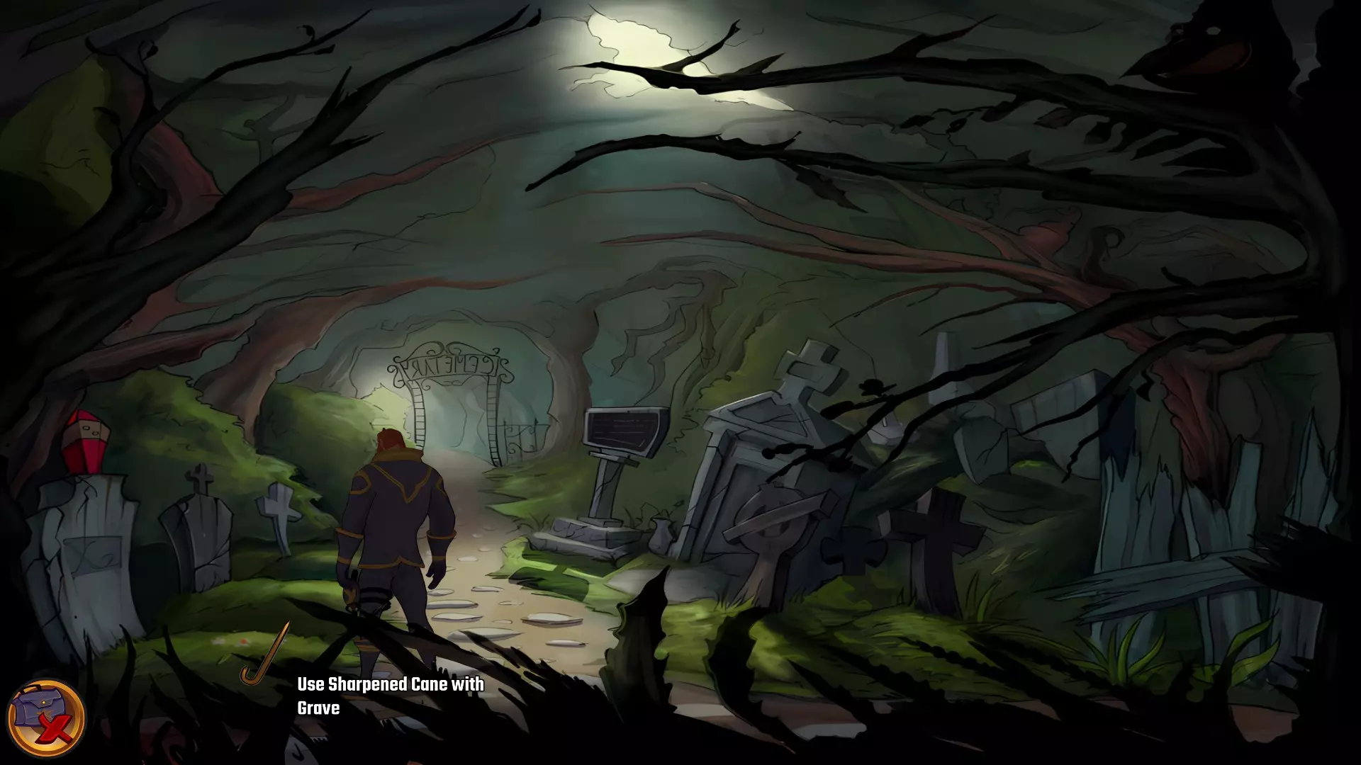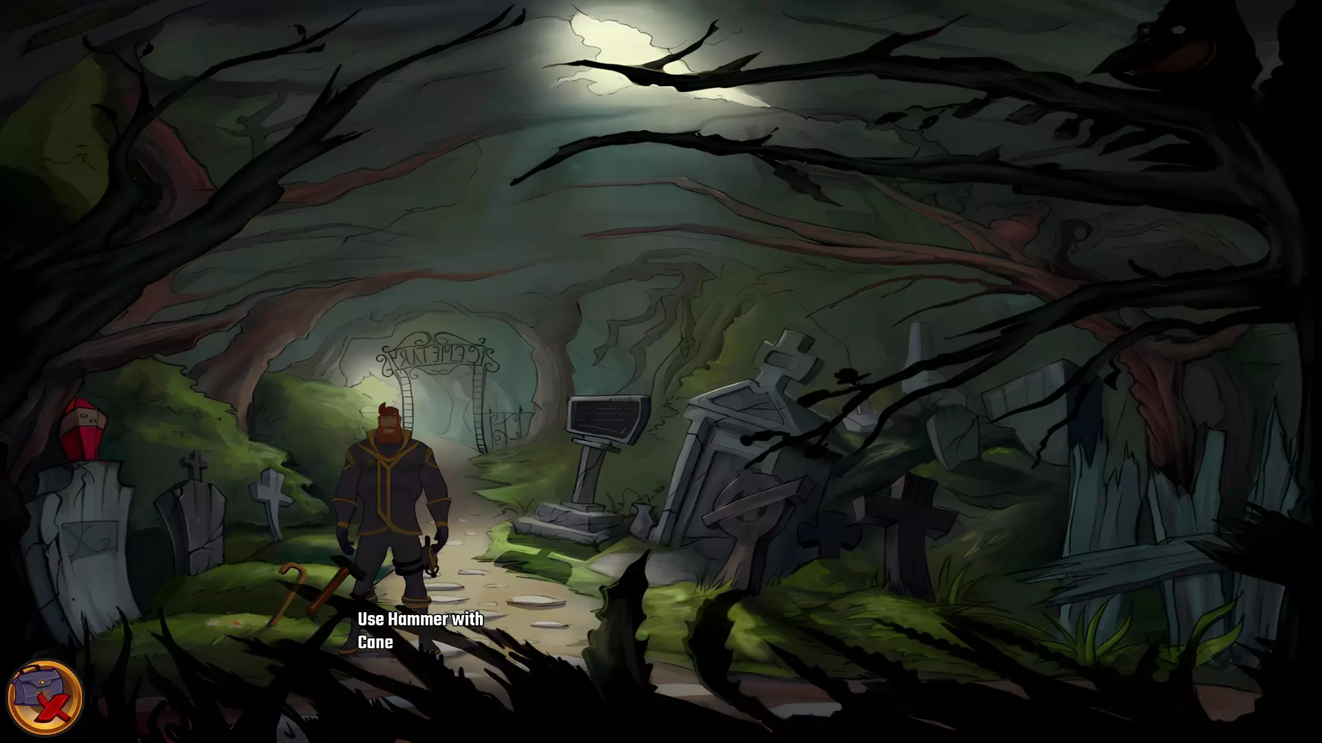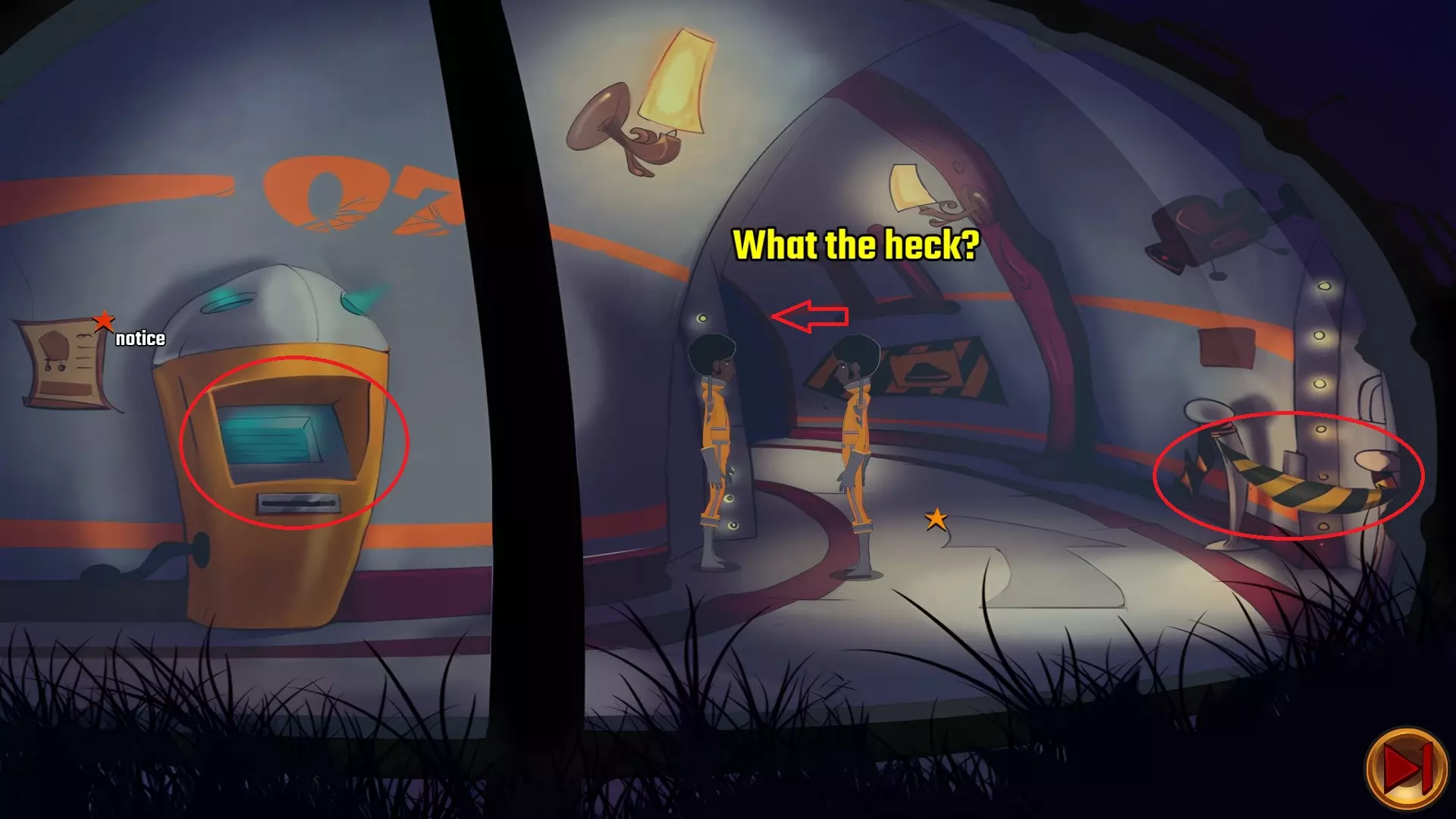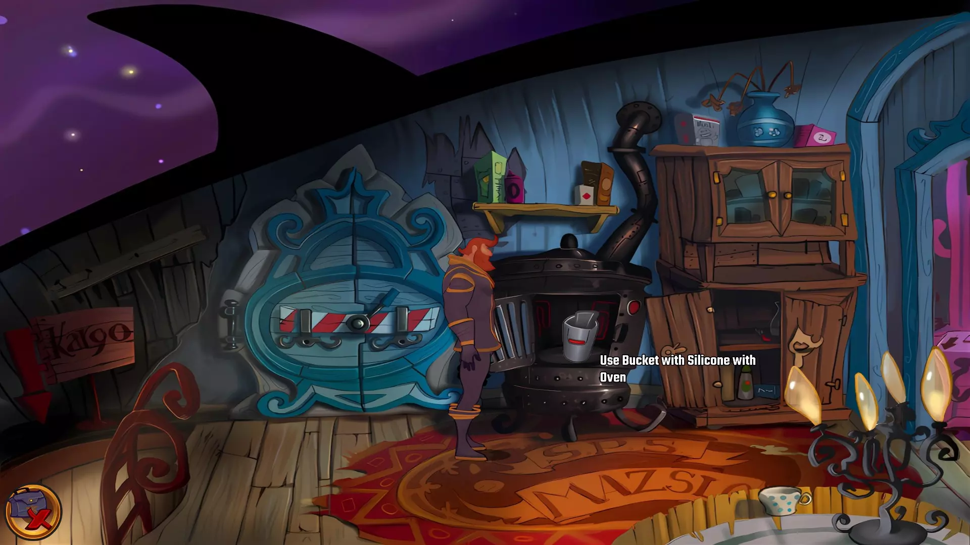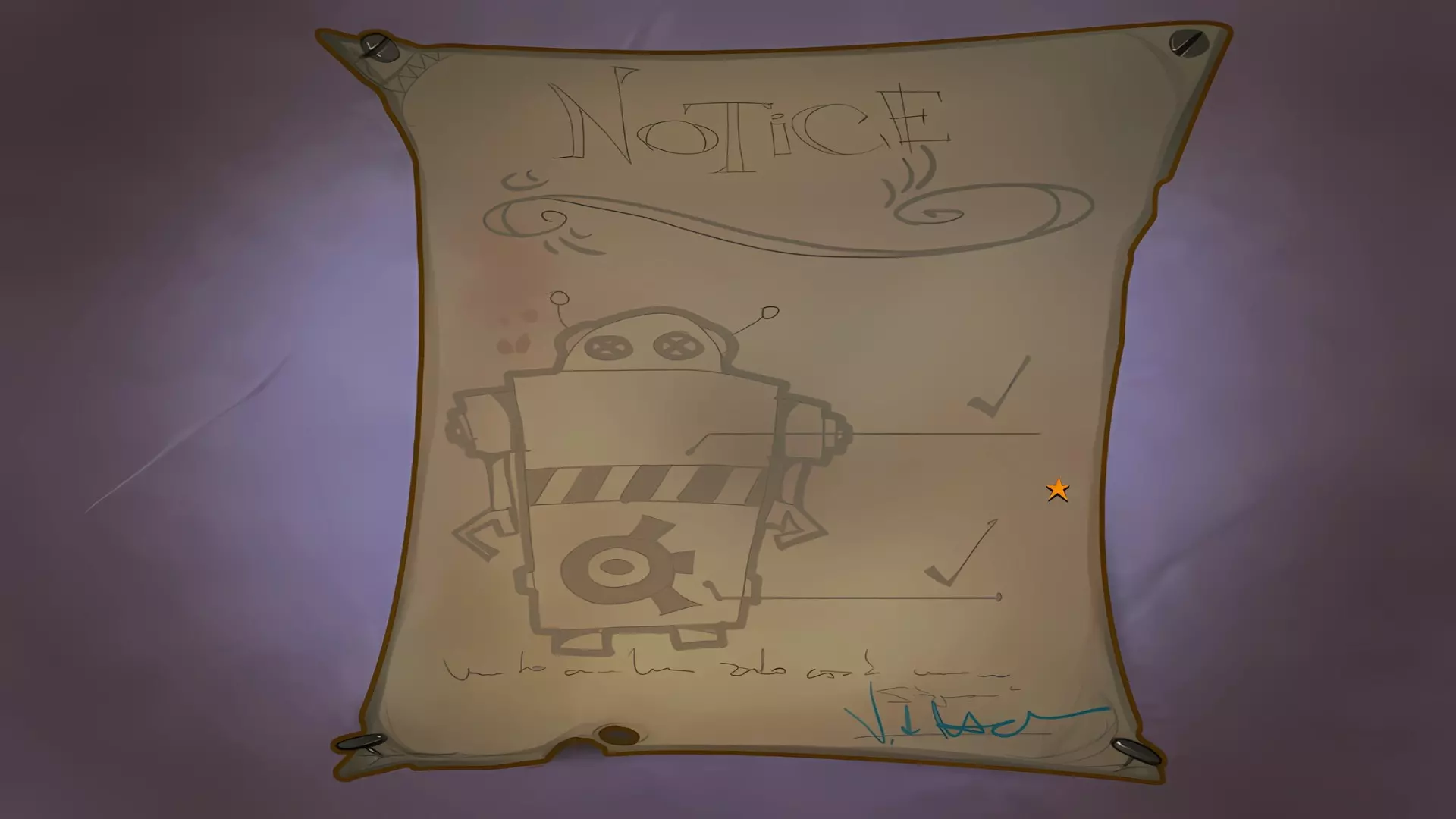 左上角的电视是菜单,内含保存、加载、更改设置或退出游戏的选项。 左下角有背包和笔记本,分别是你的物品栏和记录当前任务的地方。有时笔记本会显示绿色感叹号,为你提供一些游戏玩法提示。 右下角是问号图标,它会高亮显示所有可交互的物体和你可以走的路径。 提示:与物体、人物等互动时,有两个选项,你可能需要选择正确的选项来获得所需物品。这一机制也存在于物品栏中,与单纯点击物品不同。放大镜用于检查物品,它可以揭示世界中的信息——这些信息是角色在被指示抓取或使用物品时不会主动交互的内容,同时也能近距离查看物品栏中的物品。