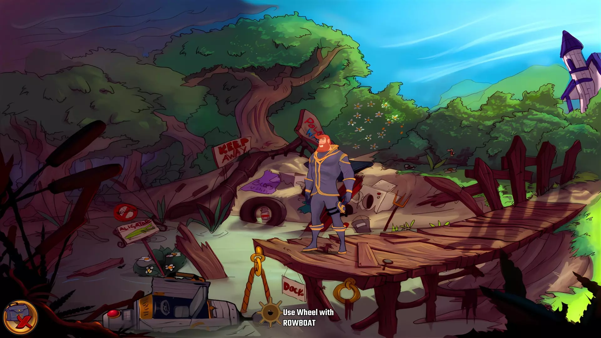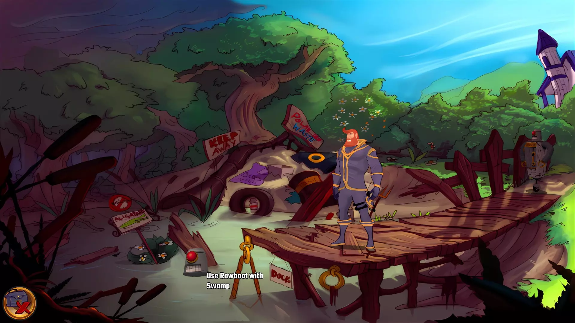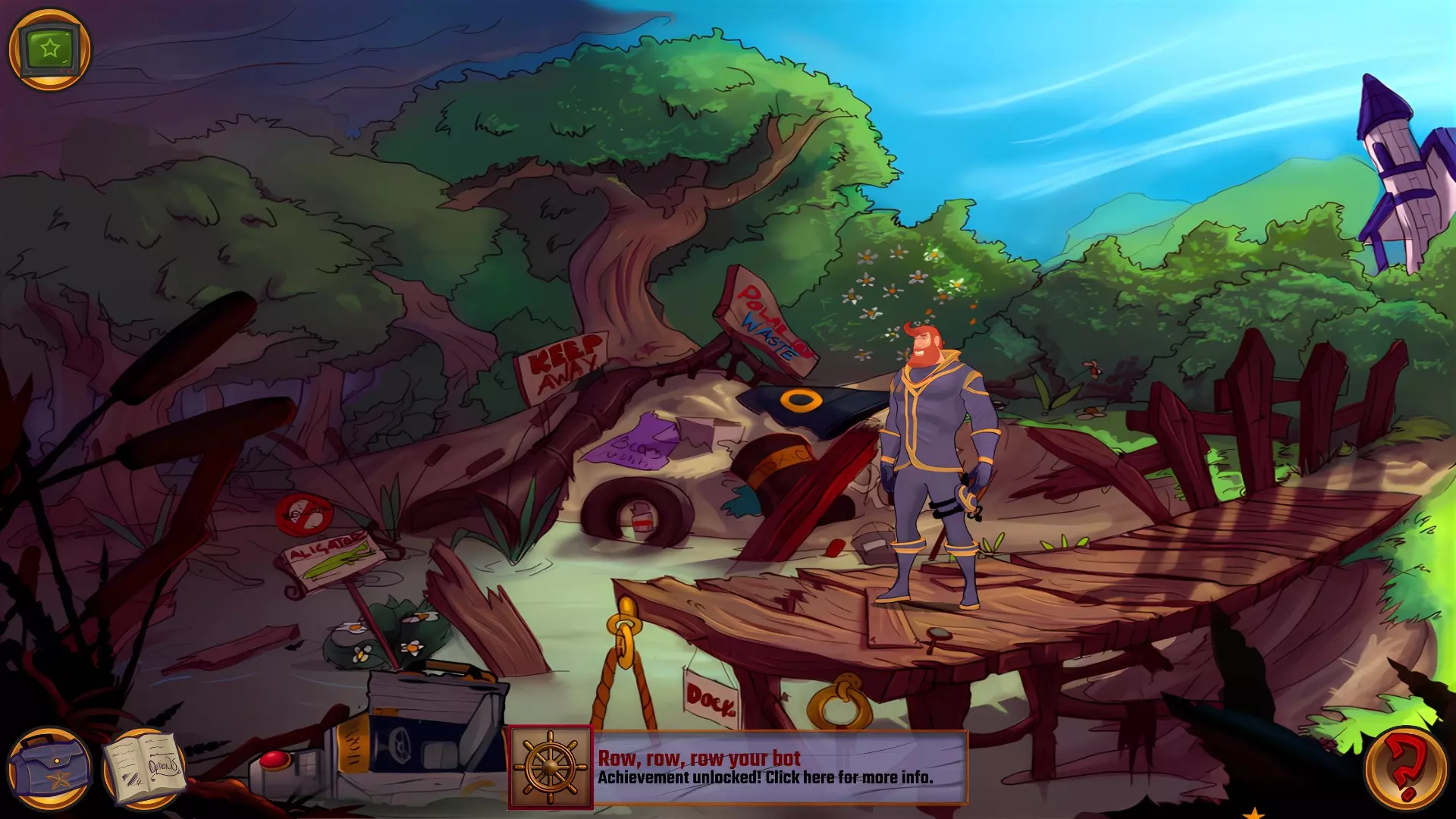 既然你现在可以穿过沼泽了,就回到码头去吧。 划呀,划呀,划你的机器人(无法错过)