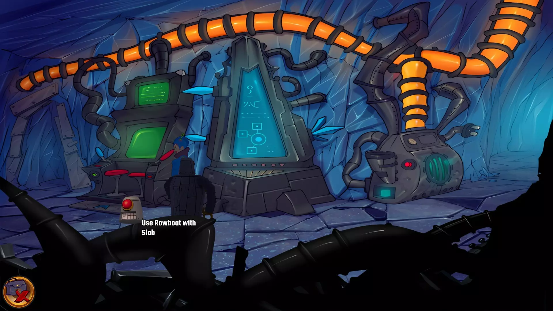 让划艇站在左侧电脑前的石板上。