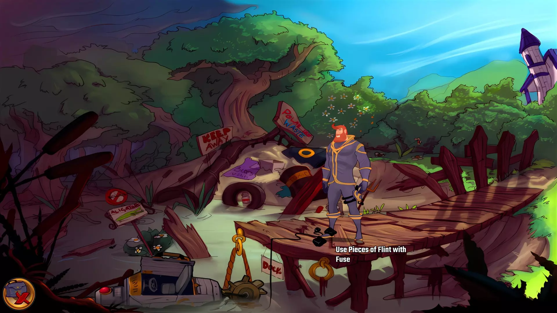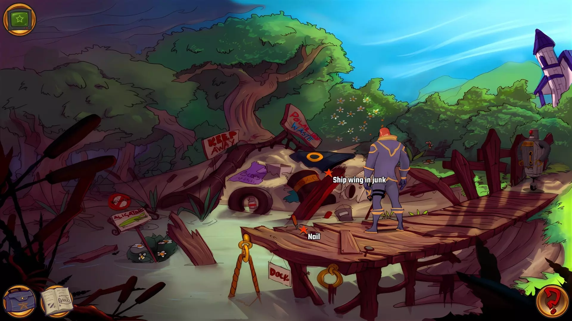 向左前往沼泽,你就会到达码头。检查垃圾中的船翼和松动的【钉子】,会发现它其实是一把螺丝刀,拿起它。