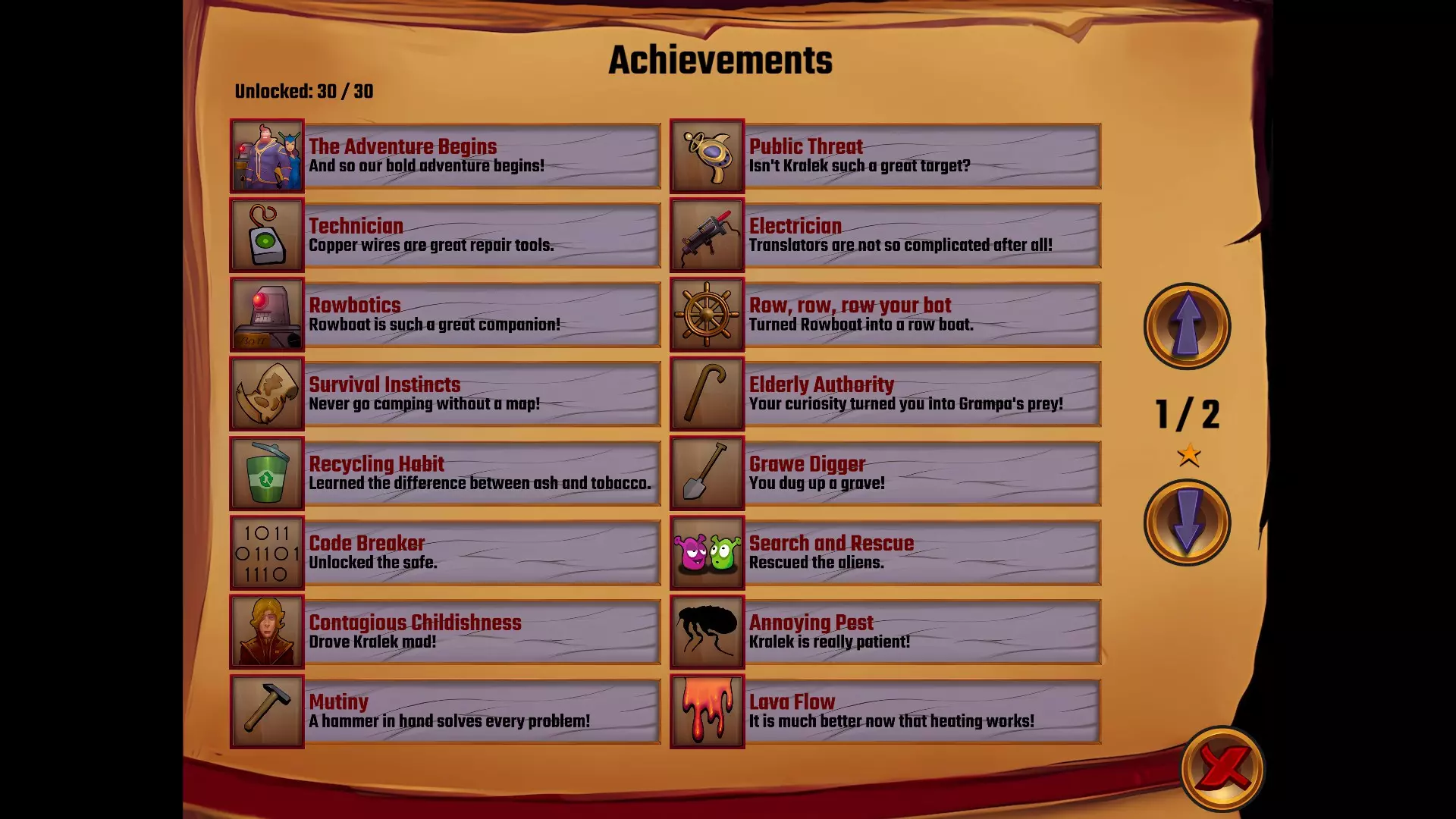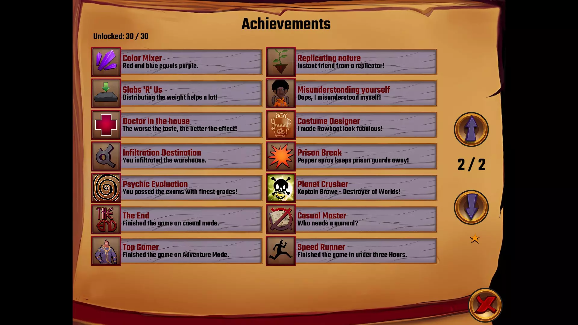 休闲大师 完成游戏且不使用任何提示 在休闲难度下不使用任何提示,通关后即可解锁。强烈建议不要使用日志或问号,因为我不确定是什么导致无提示通关失败。