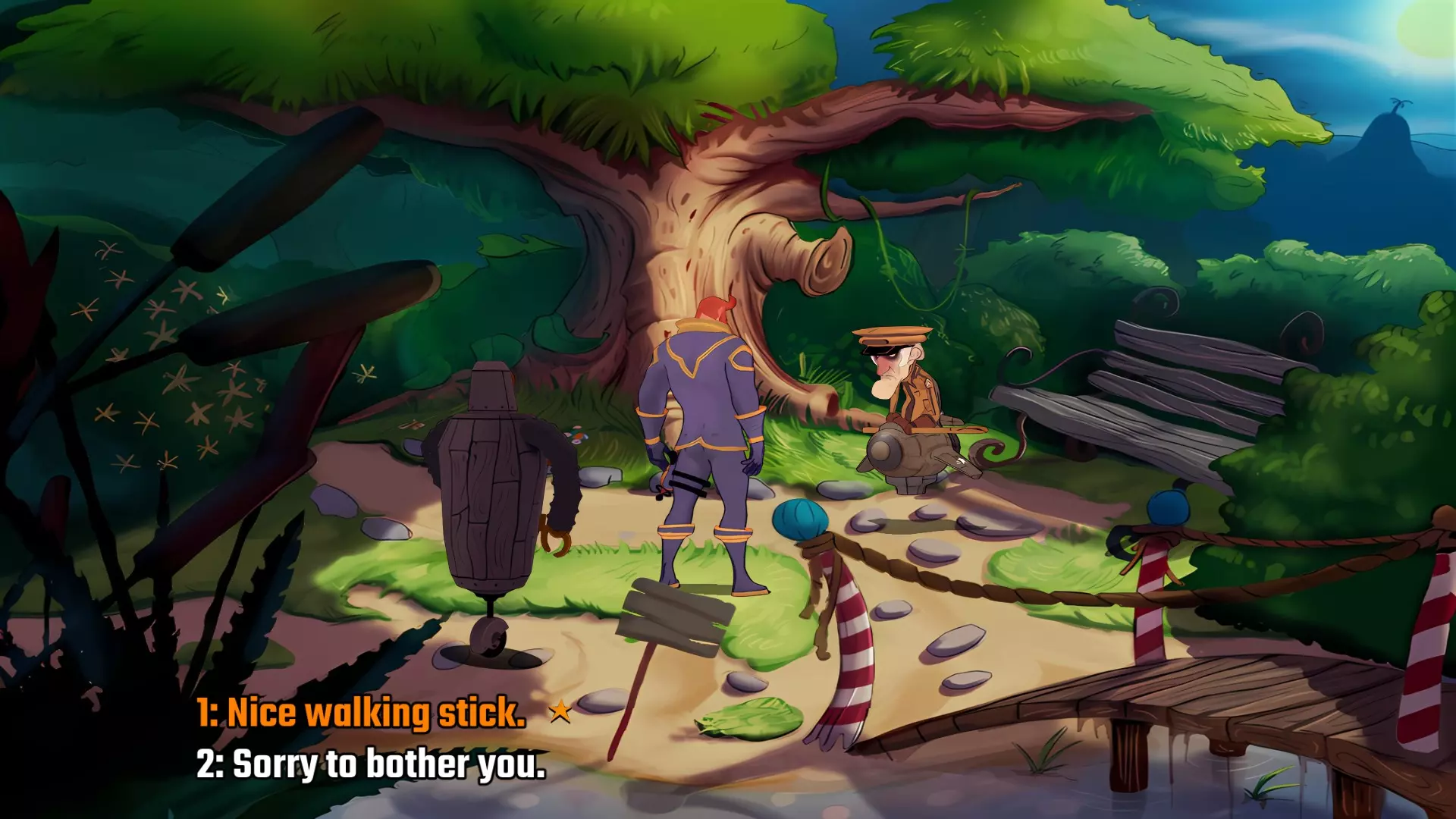 长者的威严 这位老爷爷有个巧妙的小把戏,靠近点! 在公园里和老人交谈时,询问他的拐杖并同意凑近看看,他就会试图用拐杖打你。 一旦你给他他要的【烟草】,让他放下拐杖,这个成就就无法获得了。