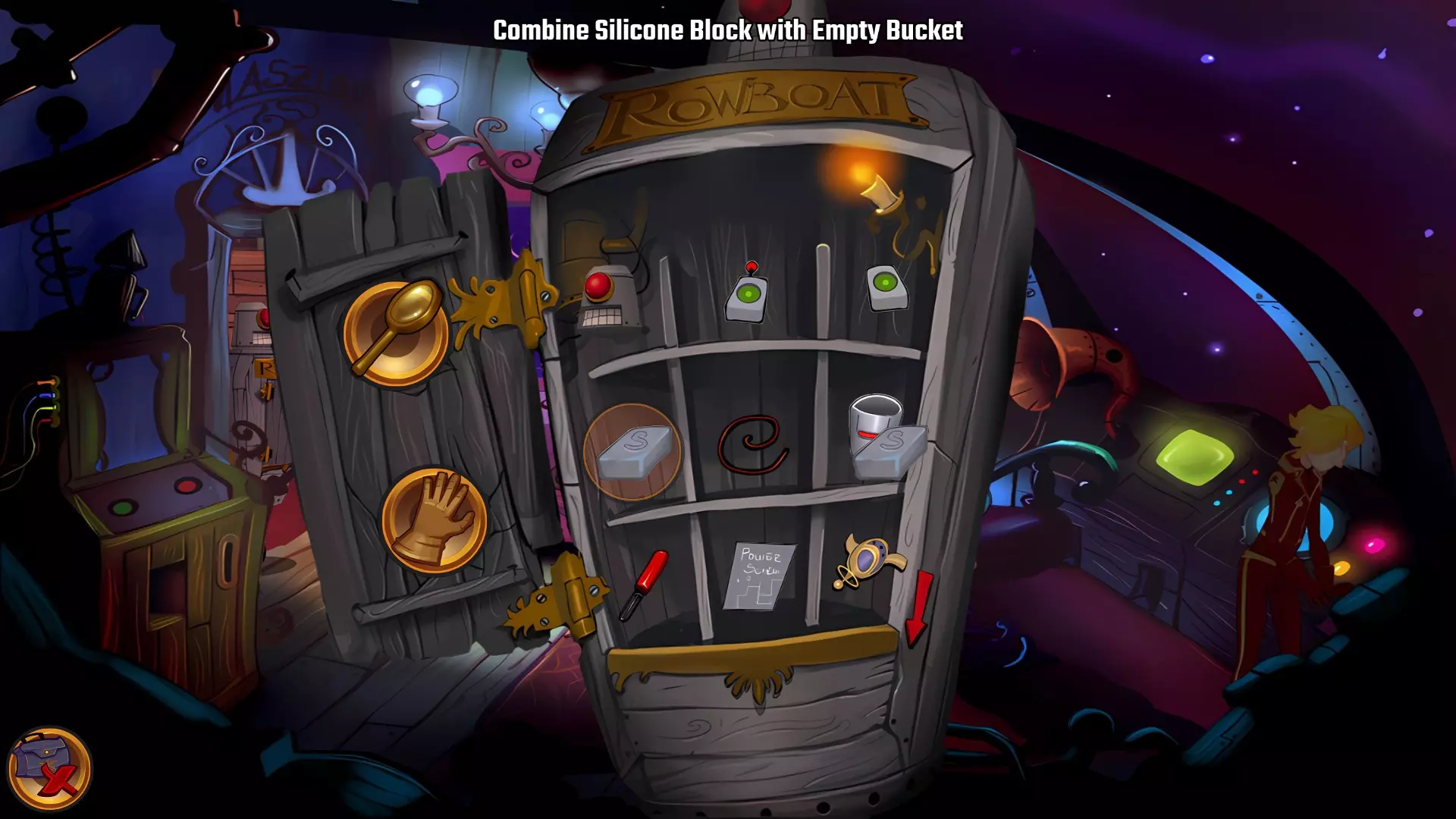 从服务槽取回翻译手册 返回货舱 检查划艇,布拉维船长会启动它 Rowbotics(无法错过)