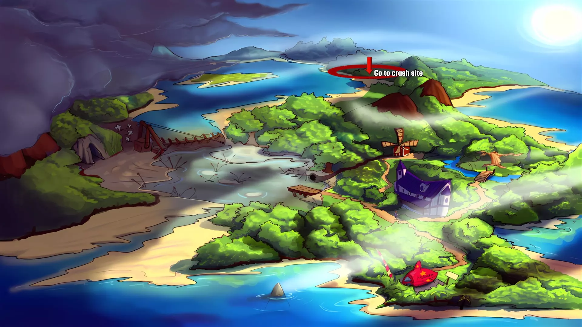 回到酒店旁克拉雷克所在的十字路口,向他汇报从当地人那里打听到的情况以及机翼损坏的事。 向右经过克拉雷克,返回停机坪。 进入SPS马兹斯洛号。