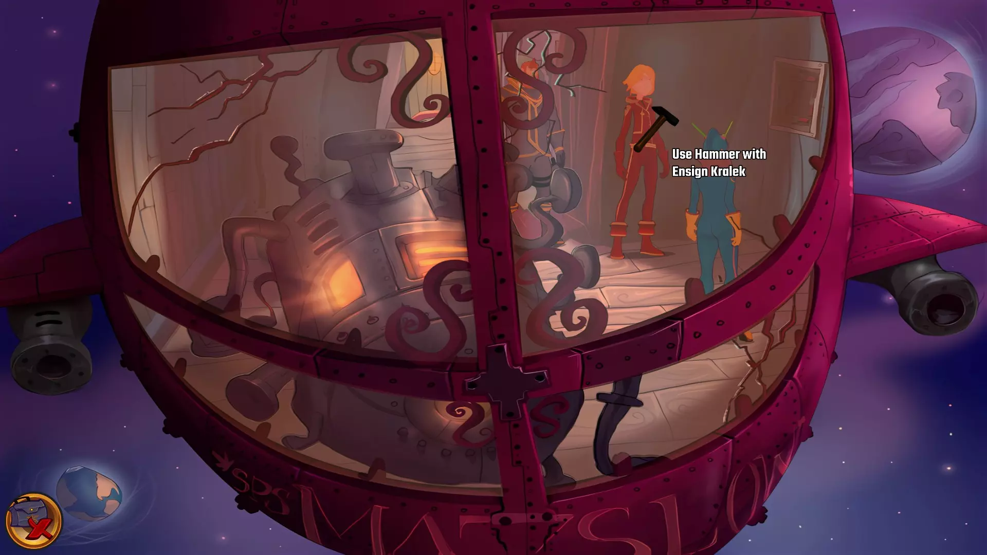 哗变 使用一切必要工具夺取飞船! 用锤子引诱并敲晕克拉莱克,以掌控飞船。