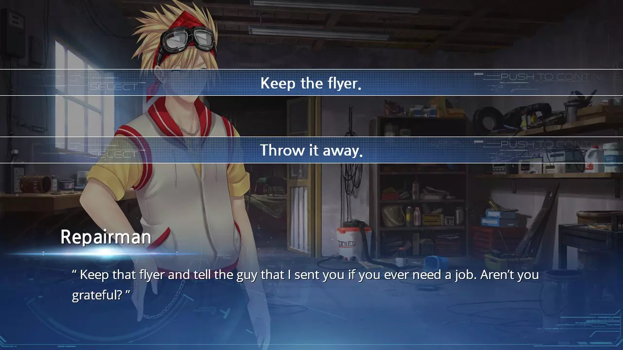 要解锁成就“Butterfly Effect”,请选择【保留传单】选项。 选项011 - 别管她。 - 帮她一把。